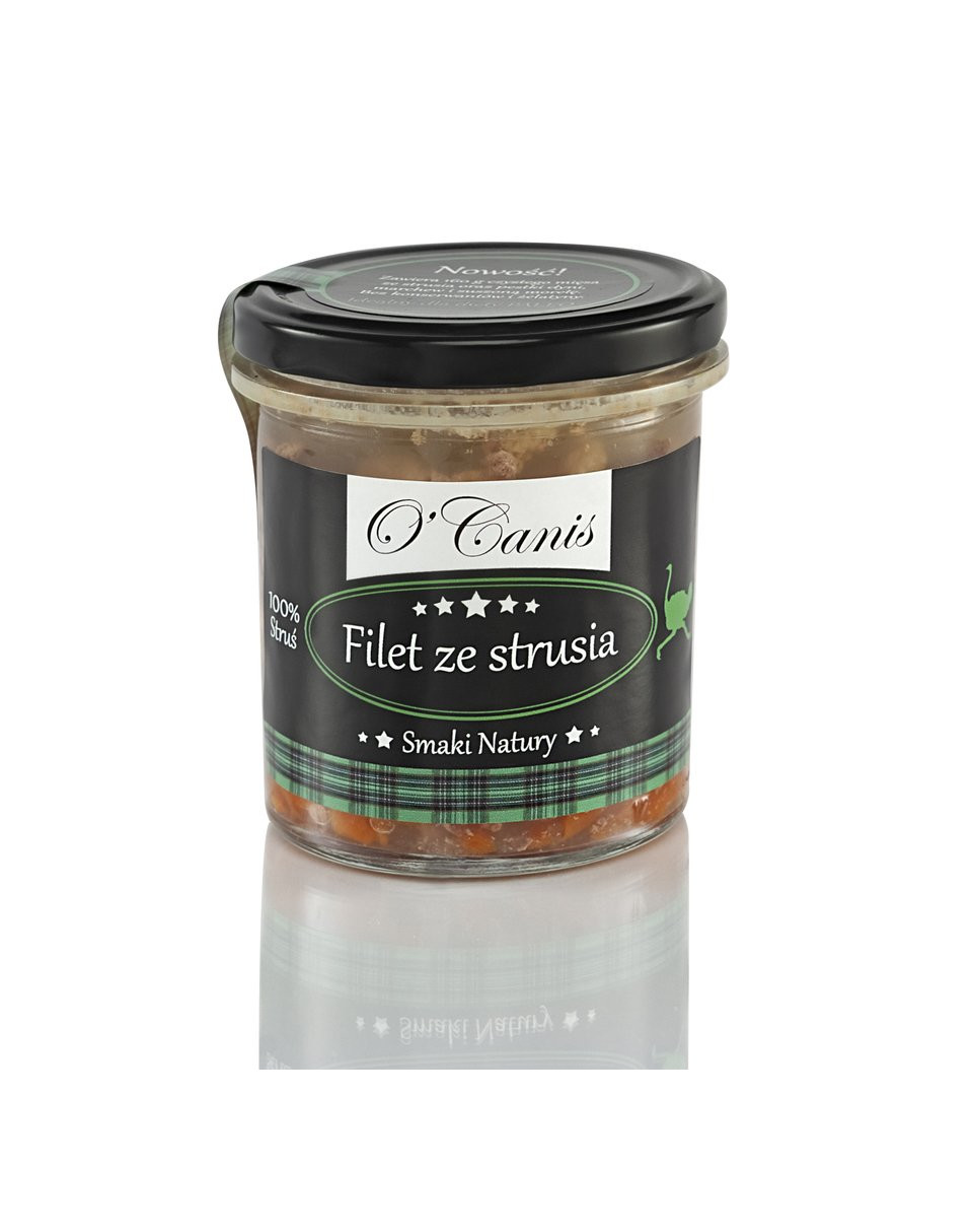 Doplnkové jedlo pre psa v pohári. Obsahuje nakrájané pštrosie mäso na prírodnom vývare (vývar), tekvicové semienka, mrkvu a sušenú marhuľu. Žiadne konzervačné látky ani želatína. Uchovávajte pri teplote do 20 ° C