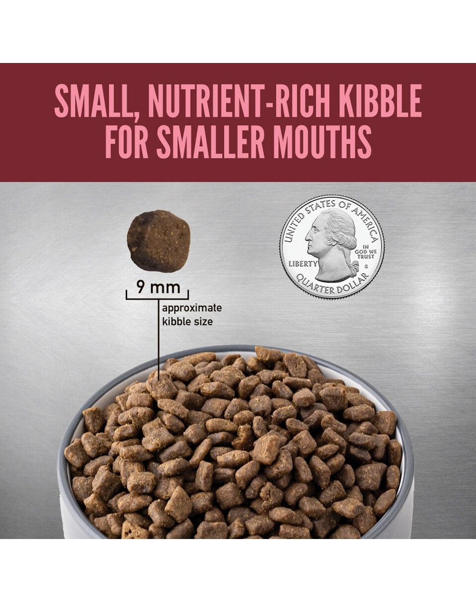 stodoly a ryby. Krmivo bolo vyvinuté špeciálne pre menšie psy. Malé granule sú