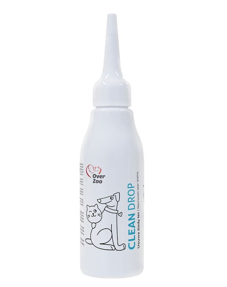OVER ZOO Clean Drop je špecializovaná tekutina určená na redukciu zafarbení, ktoré vznikajú v dôsledku nadmerného slzenia u psov, mačiek a iných malých domácich zvierat. Pravidelné používanie pomáha obmedziť viditeľné škvrny pod očami a zlepšiť estetiku okolia očí. Produkt je obľúbený medzi chovateľmi aj profesionálnymi salónmi pre úpravu zvierat.