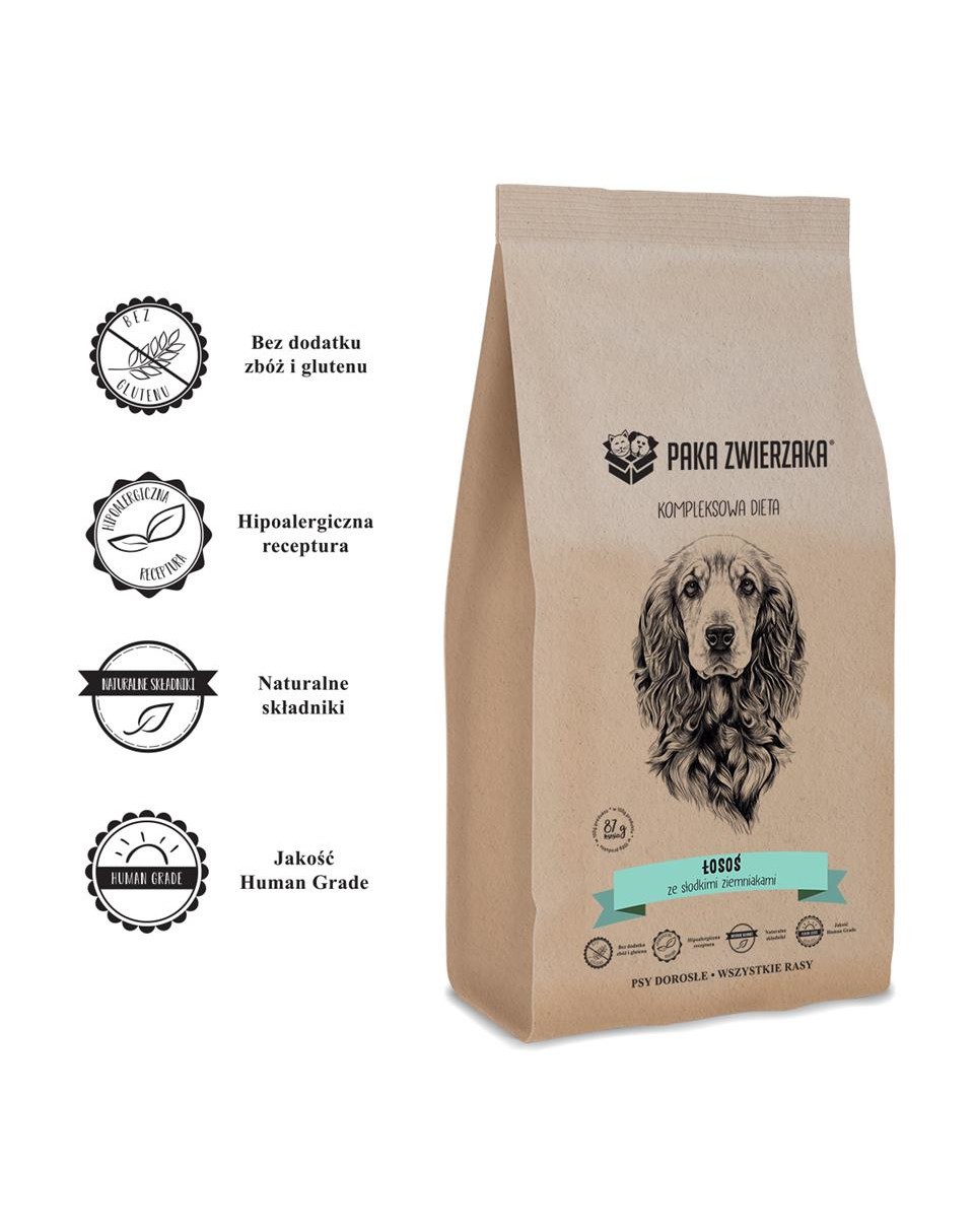 losos 23%, lososový olej 4%, lososový vývar 3%), sladké zemiaky, hrášok, repná