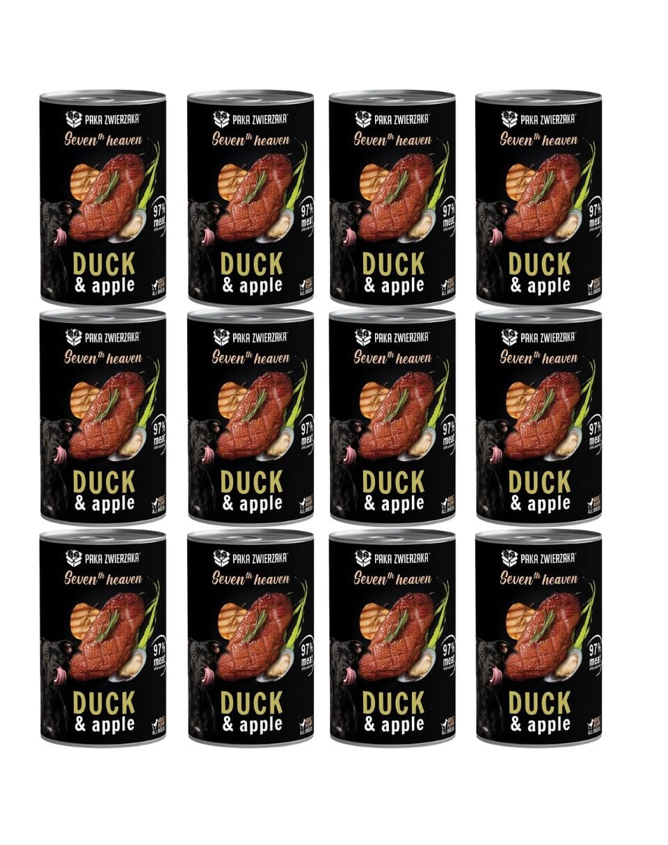 Dokonale vyvážené SUPERPREMIUM krmivo v konzerve pre psov všetkých vekových kategórií. Kompletné jedlo bez obilnín, lepku, konzervačných látok a umelých farbív. Kačacie mäso najvyššej kvality a pridanie jabĺk robia jedlo chutné a ľahko stráviteľné. Starostlivo vybrané zloženie pre psov s citlivým žalúdkom.