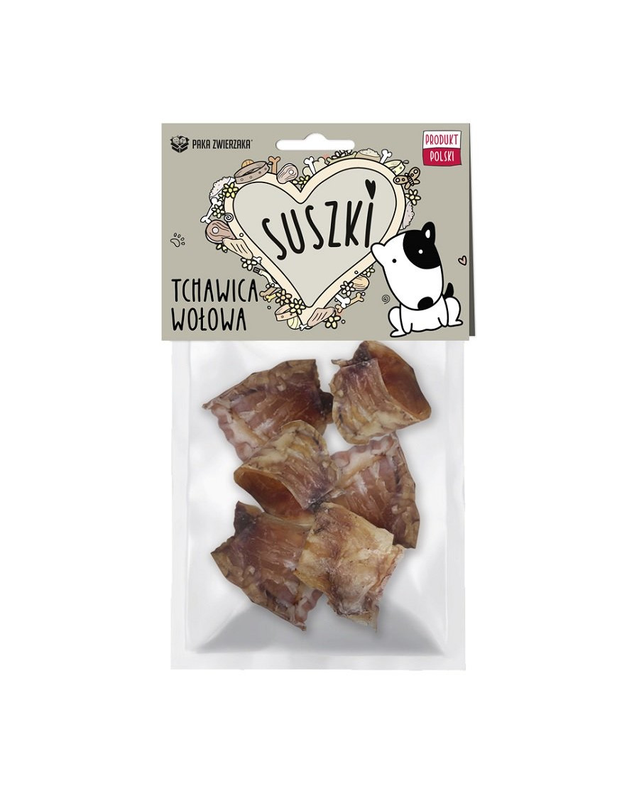 výhradne zo sušenej hovädzej priedušnice. Hovädzie mäso použité v jeho zložení