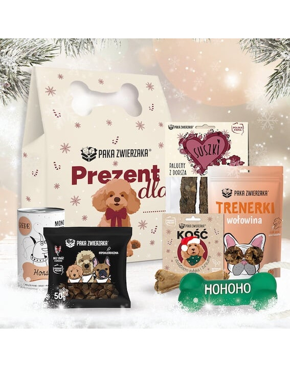 PAKA ZWIERZAKA Vianočný box pre psa je výnimočný darčekový set plný maškŕt a prekvapení, ktoré rozvibrujú chvost každého štvornohého miláčika!