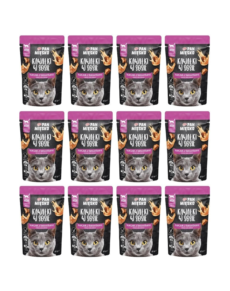 ZLOŽENIE: Kuracie mäso 71 % v mletých kúskoch* (mäso 52 %, pečeň, žalúdky), krevety 8 % v mletých kúskoch*, hovädzí proteín 3 %, tapiokový škrob, minerály, sušené brusnice 0,2 %, lososový olej 0,2 %, sušené pivovarské kvasnice 0,2 %, bazalka 0,1 %. *Kúsky tvoria 52 % hotového výrobku.