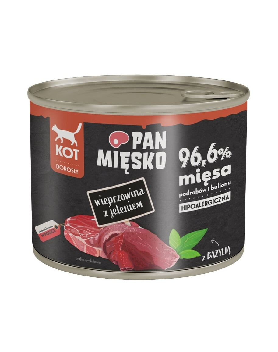 Objavte mokré krmivo pre mačky Pan Mięsko s vysokým obsahom mäsa. Obsahuje starostlivo vybrané mäso, šťavnaté poľské jablká a cenné prísady, ako sú bylinky a semená, ktoré pozitívne ovplyvnia zdravie a pohodu vašej mačky. Naše recepty boli vyvinuté odborníkmi, aby vášmu štvornohému spoločníkovi poskytli presne to, čo potrebuje.