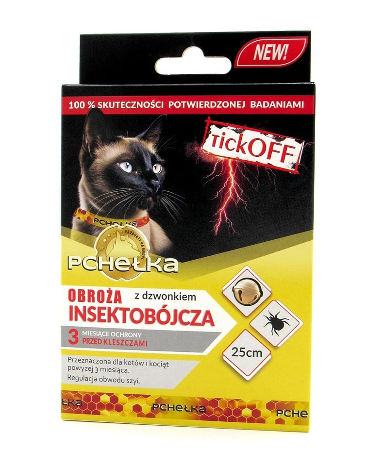 Insekticídny obojok so zvončekom TICK OFF určený pre mačky a mačiatka staršie ako 3 mesiace s dĺžkou 25-30 cm.