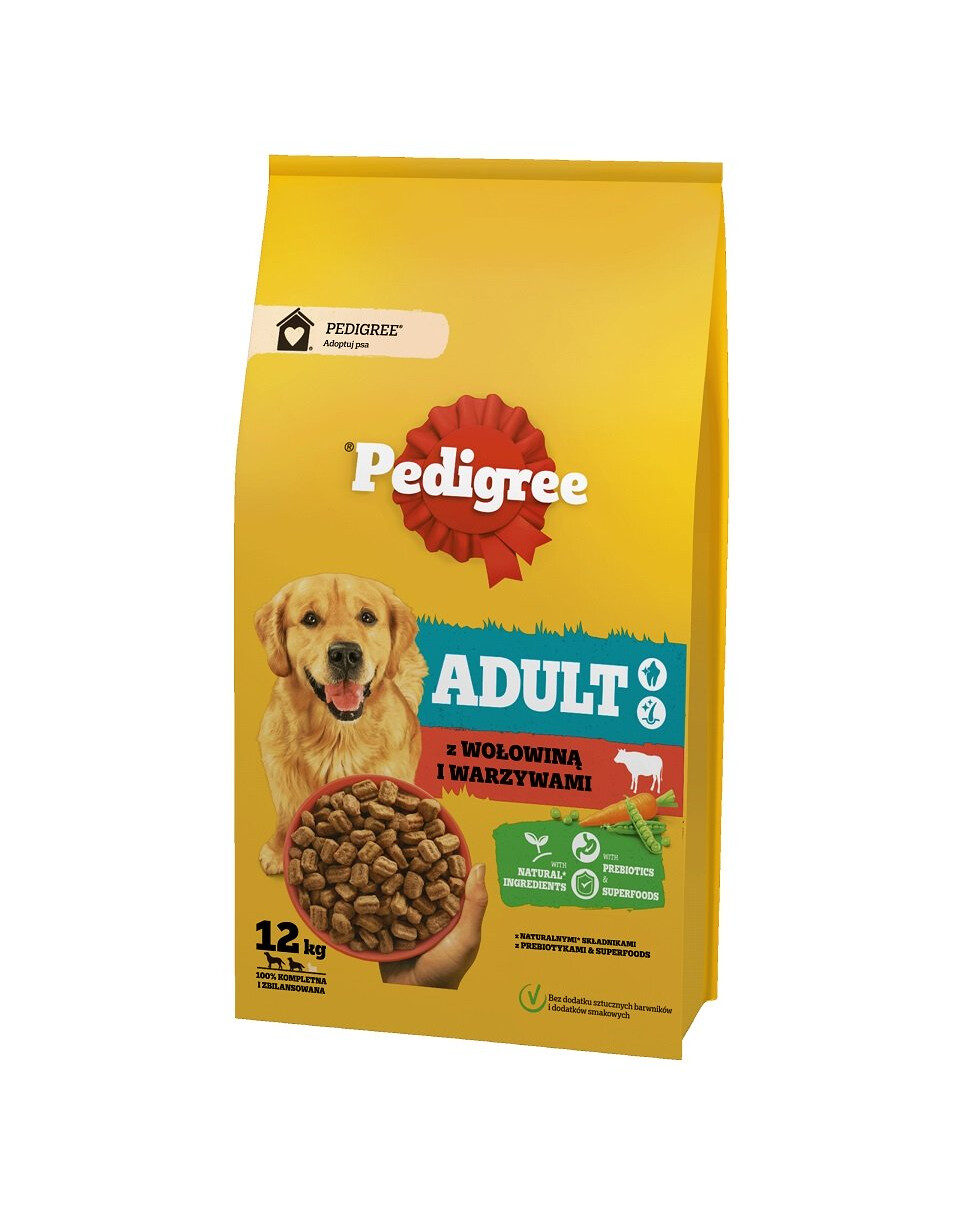 PEDIGREE Adult suché krmivo s hovädzím mäsom a zeleninou je kompletné krmivo pre psy veľkých a stredných plemien.