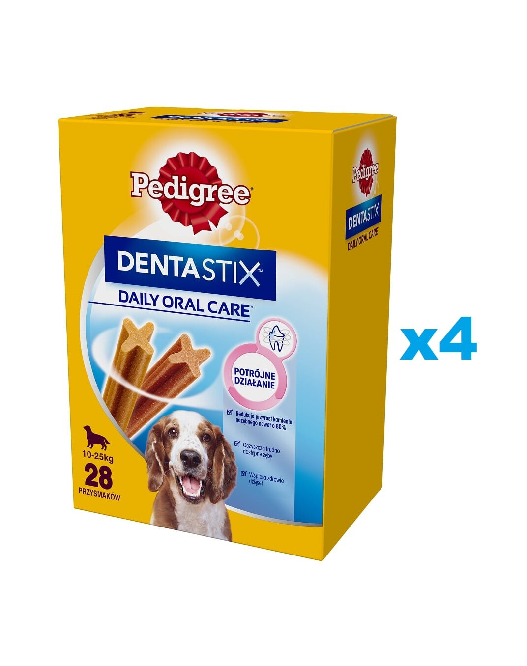 Pedigree® Daily DentaStix® sú dentálne maškrty v jedinečnom tvare písmena X, u ktorých je vedecky dokázané, že pri každodennom užívaní pomáhajú znižovať tvorbu zubného kameňa až o 80 %.