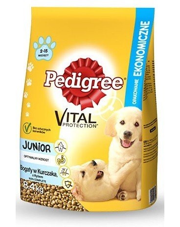 Pedigree Junior s kuracím mäsom a ryžou je vyvážené krmivo pripravené podľa jedinečnej receptúry Healthy Start®.