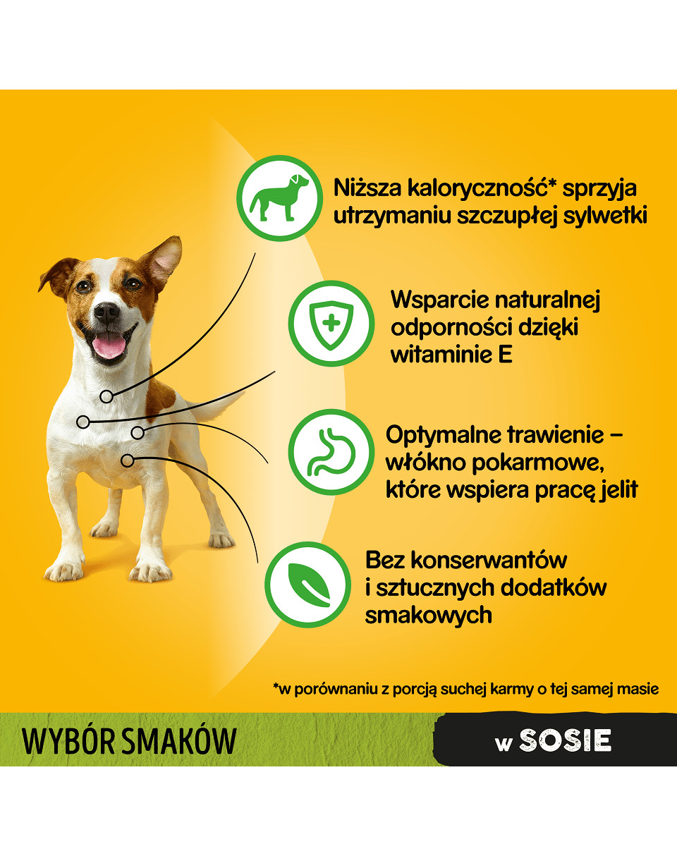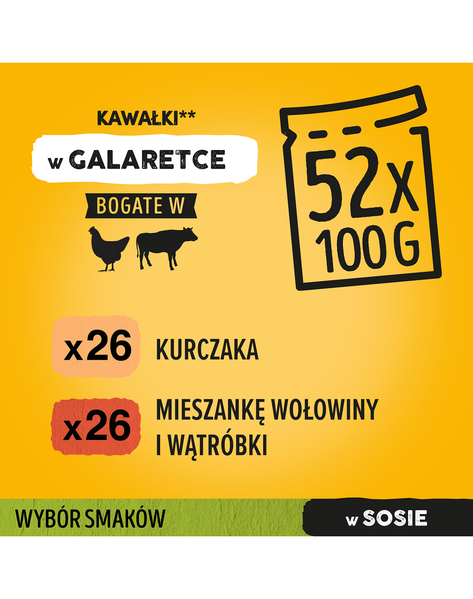 Pyszne saszetki dla psa z kurczakiem, warzywami i wołowiną. Wielopak: 13 opakowań po 4 saszetki ( każda 100 g).