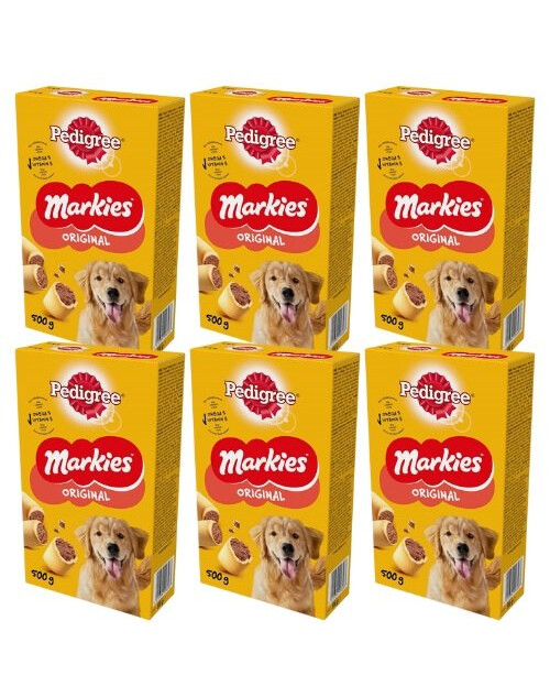 PEDIGREE Markies Original sú lahodné sušienky, ktorými svojmu domácemu miláčikovi nielen urobíte radosť, ale postaráte sa aj o jeho zdravie a vitalitu. Vápnik obsiahnutý v zložení podporuje udržiavanie zdravých kostí a zubov a prídavok vitamínu E má pozitívny vplyv na imunitný systém. Pochúťka obsahuje aj omega-3 mastné kyseliny, ktoré pomáhajú udržať vášho domáceho miláčika v dobrej kondícii po celý život. Sušienky sa dodávajú vo forme chrumkavých trubičiek s prídavkom kostnej drene, ktorej chuť psy milujú.