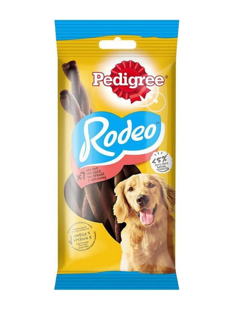 Ak chcete uspokojiť potrebu vášho psa žuť a hrýzť, vyberte si krmivo PEDIGREE® Rodeo™. Jarné závitky s hovädzím mäsom sú skvelou chutnou desiatou, ktorá urobí radosť. Lahodná pochúťka uspokojí potrebu žuť a hrýzť a poskytne vášmu psovi pohlcujúce zamestnanie. Toto doplnkové krmivo neobsahuje žiadne umelé farbivá ani dochucovadlá. Maškrta obsahuje vápnik, ktorý je nevyhnutný pre zdravé zuby a silné kosti. Prírodné potešenie pre vášho psieho kamaráta.