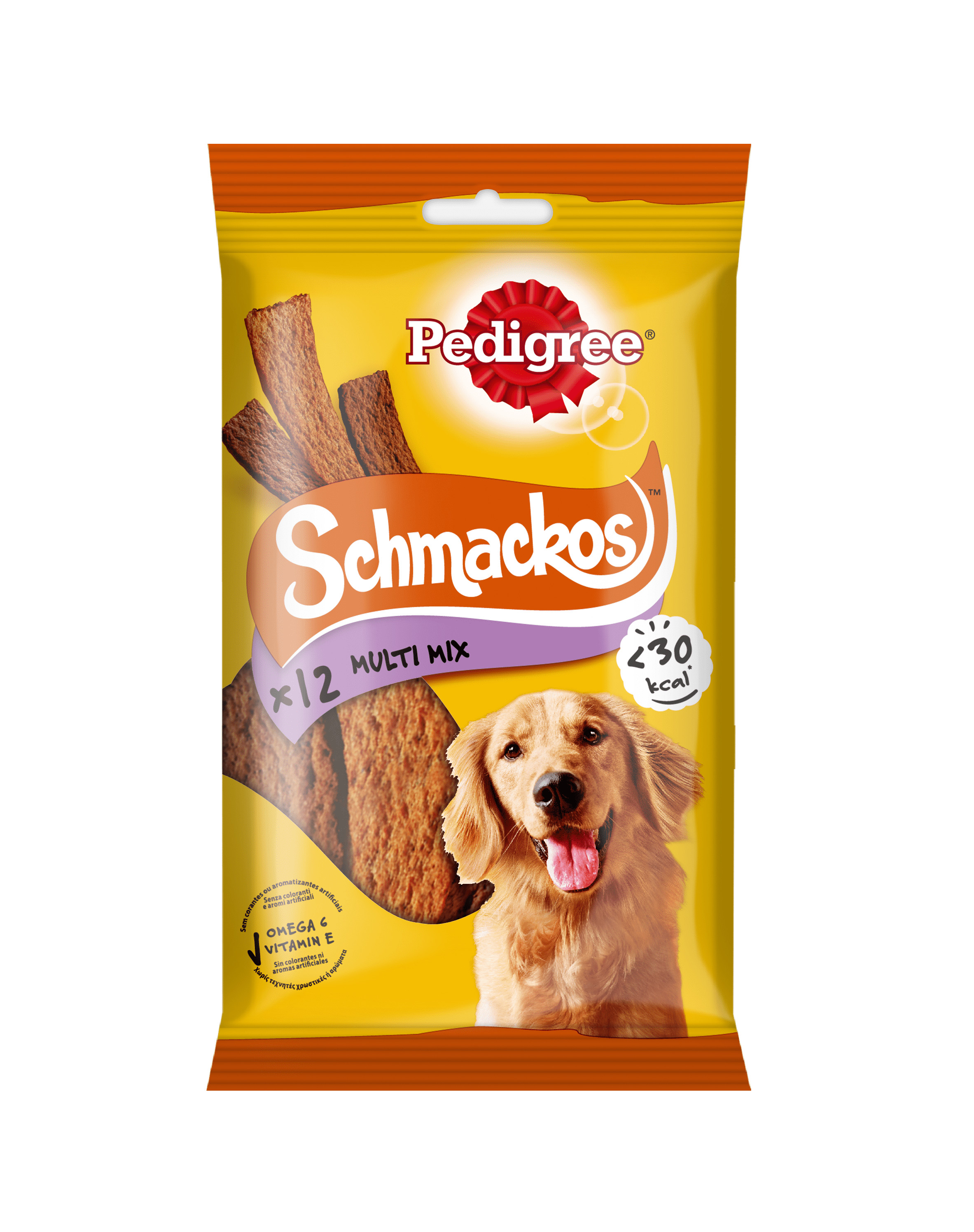 Každý pes si zaslúži lahodnú pochúťku - či už ako odmenu počas tréningu, alebo ako darček pre zvláštnu príležitosť. Pedigree Schmackos však nie je len lahodnú desiatou pre rôzne príležitosti, ale aj výrobkom, ktorý pomáha pri každodennej starostlivosti o zdravie vášho psa, napr. Tým, že pomáhajú znižovať tvorbu zubného kameňa.