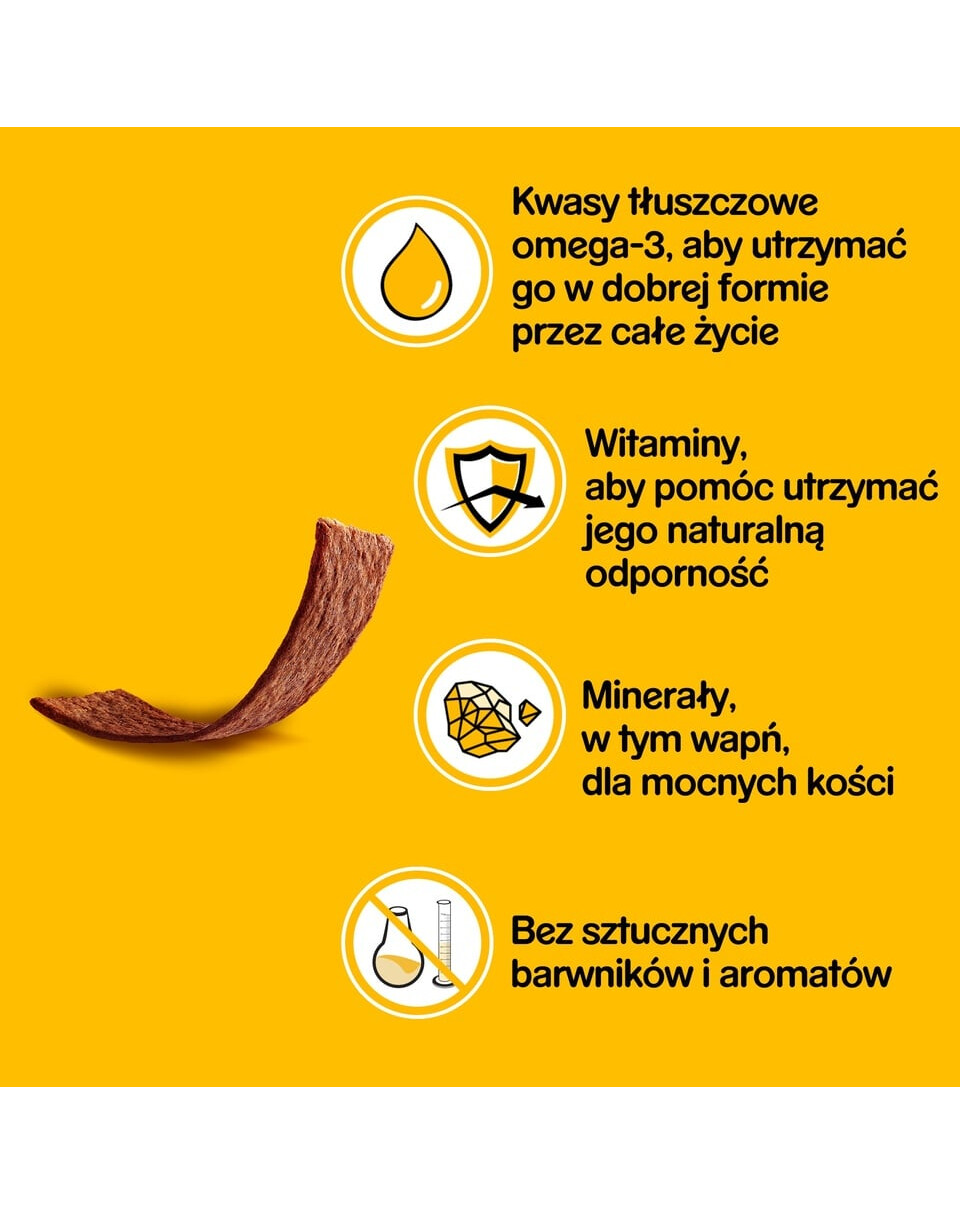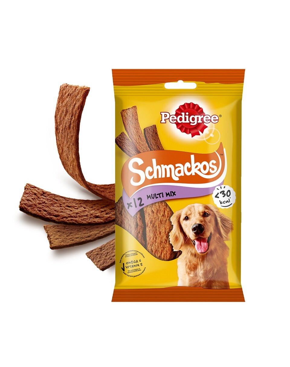 Pochúťky pre psa PEDIGREE Schmackos Multi Mix 36 g uspokojí prirodzené potreby vášho dospelého miláčika vyplývajúce z jeho inštinktu. Táto pochúťka pre psa je vo forme pásikov, ktoré sa dajú ľahko rozdeliť na menšie kúsky. Funguje dobre ako pri prechádzke, pri tréningu, tak aj pri domácej hre so psom. PEDIGREE Schmackos je dokonalým doplnkom ku každodennej potrave vášho psa, poskytuje mu dôležité živiny, vrátane vitamínov A a E a železa. Bol vyvinutý pod dohľadom veterinárnych lekárov a špecialistov na výživu z WALTHAM Institute of Animal Science. V záujme čo najlepšej výživy psa bolo pri jeho výrobe použité mäso a hodnotné produkty živočíšneho pôvodu z hydiny, hovädzieho a jahňacieho mäsa. Zloženie tejto maškrty je bez umelých farbív a aróm.