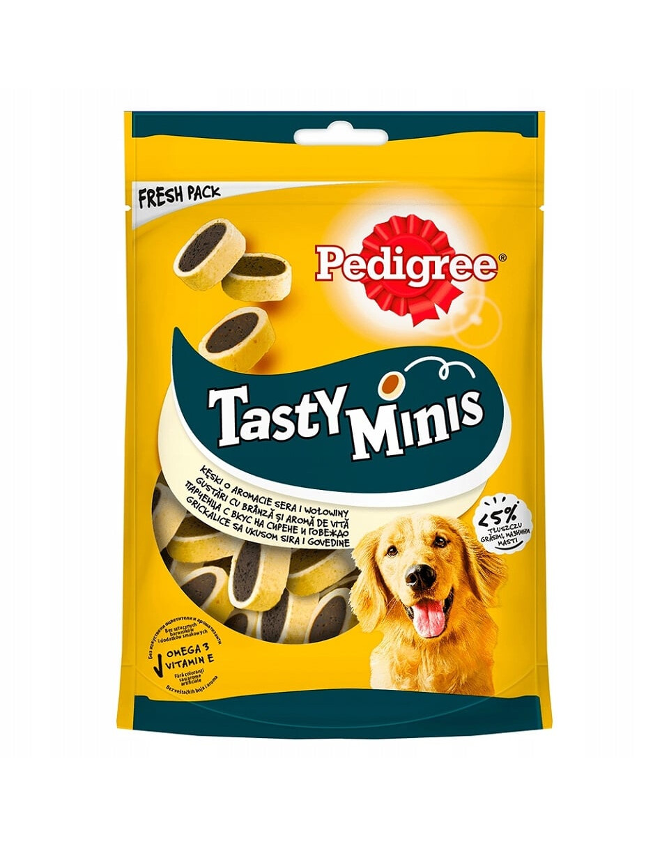 Maškrta pre psov PEDIGREE® Cheese Bites má jedinečnú príchuť mäsa a zároveň je obohatený o esenciálne vitamíny, minerály, vápnik a omega-3 kyseliny.