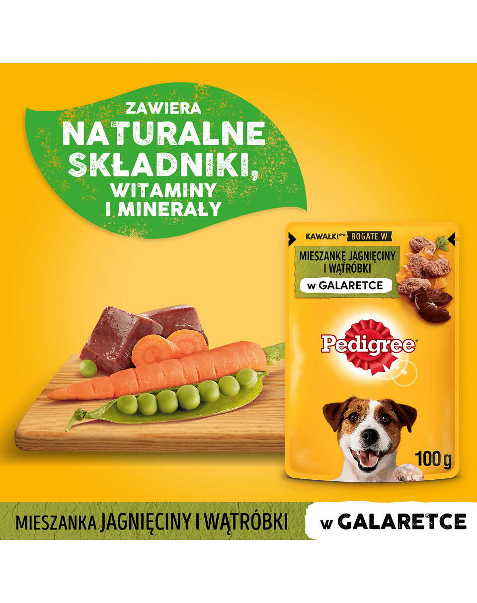 Kompletné krmivo pre dospelých psov PEDIGREE Adult pieces bohaté na zmes jahňacieho mäsa a pečene v želé bolo vyvinuté veterinármi a dietetickými špecialistami z WALTHAM™ Animal Science Institute. umelých aróm a konzervantov obsahuje prírodné zložky, vitamíny a minerály. Vitamín E obsiahnutý v krmive podporuje imunitný systém vášho maznáčika. Vláknina podporuje činnosť čriev, stará sa o zdravé trávenie a vďaka zníženej kalorickej hodnote* sa postaráte o jeho štíhlu postavu.