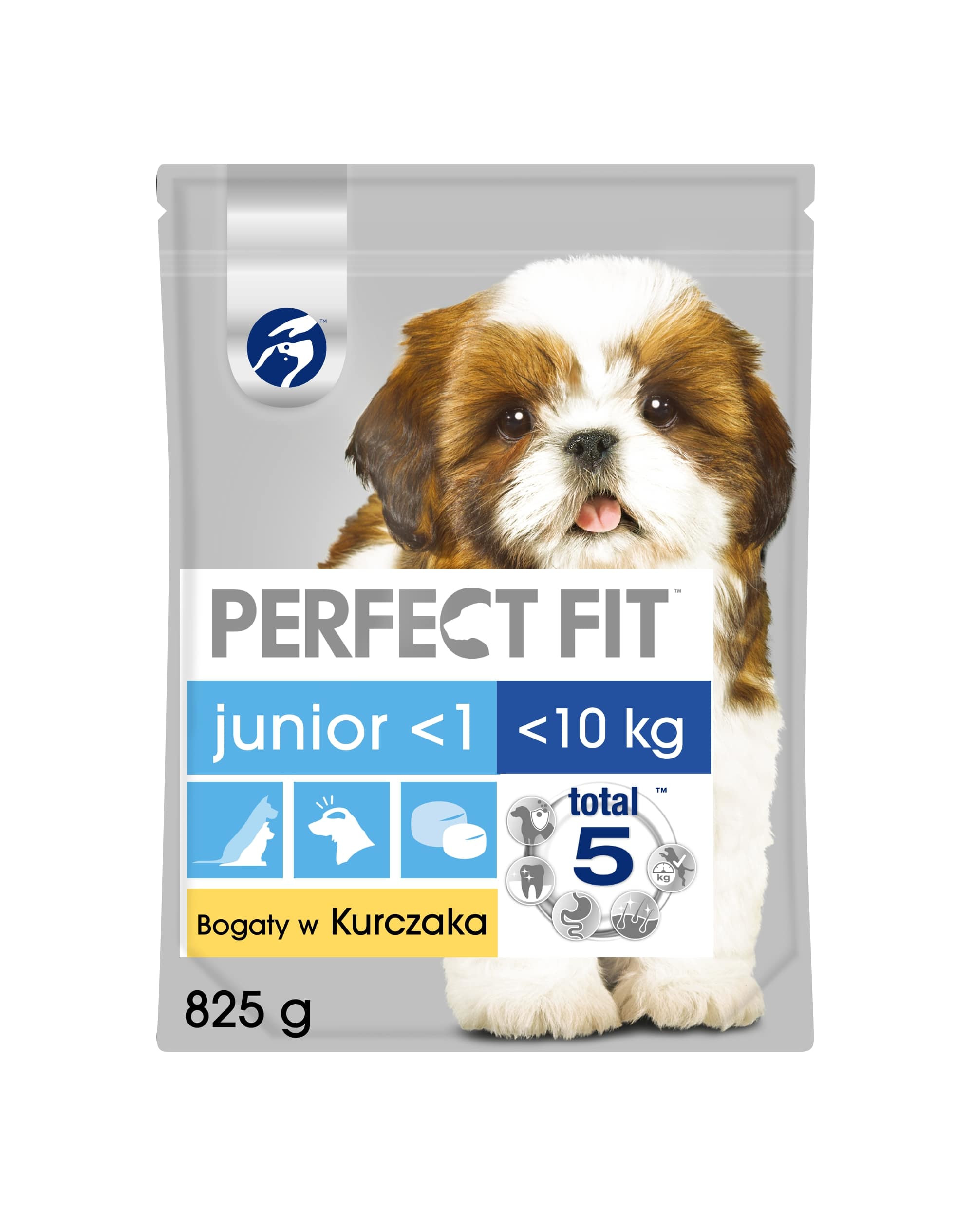 Suché krmivo pre šteňatá Perfect Fit Junior <1 Rich Chicken je kompletné a vyvážené krmivo pre malé plemená. Vyznačuje sa svojou receptúrou, na ktorej vývoji sa podieľali veterinári a odborníci na výživu z WALTHAM Institute of Animal Science. Vedci analyzovali najčastejšie zdravotné problémy psov, čo im umožnilo vyvinúť inovatívne krmivo so zložením Total 5, ktoré podporuje 5 najdôležitejších oblastí zdravia vášho domáceho maznáčika: zabezpečenie silného imunitného systému, starostlivosť o ústnu dutinu, zdravé trávenie, zdravú kožu a srsť, ako aj udržiavanie optimálnej kondície a telesnej hmotnosti. Vďaka obsahu vápnika a fosforu je toto krmivo pre šteňatá každodennou podporou ich zdravého rastu.