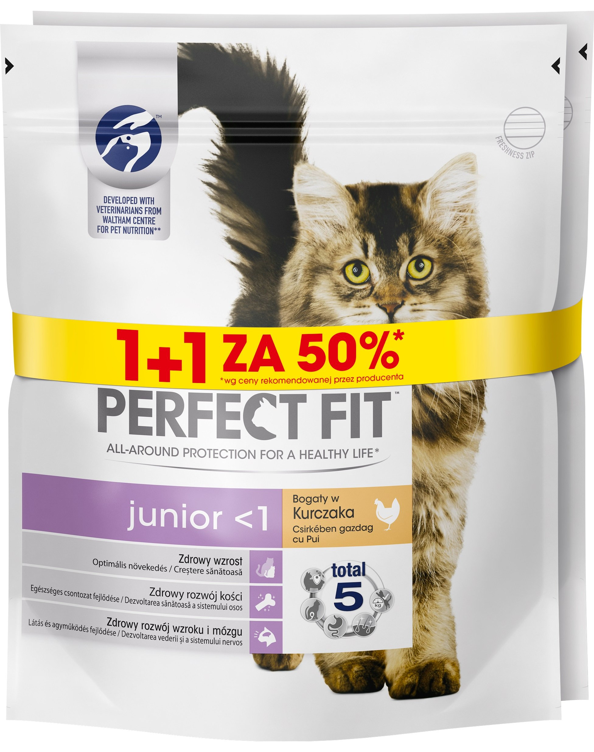 Perfect Fit Junior <1 bol vyvinutý za účasti veterinárnych lekárov a odborníkov na výživu z WALTHAM Pet Nutrition Center. Je to chutné jedlo, ktoré obsahuje jedinečnú receptúru "Total 5" a dáva vašej mačke ochranu zdravia, ktorú denne potrebuje. Ale Perfect Fit nie je iba receptúra "Total 5" - varianta bohatá na kurča poskytuje ďalšie výhody, ktoré súvisia so zdravím a životným štýlom vašej mačky. Vďaka tomuto jedlu prispôsobenému jeho špecifickým potrebám si môžete byť istí, že váš maznáčik pre neho dostane správne jedlo.