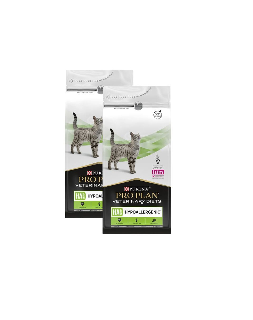 Purina Pro Plan Veterinary Diets Feline HA je hypoalergénna strava pre mačky s potravinovými alergiami.