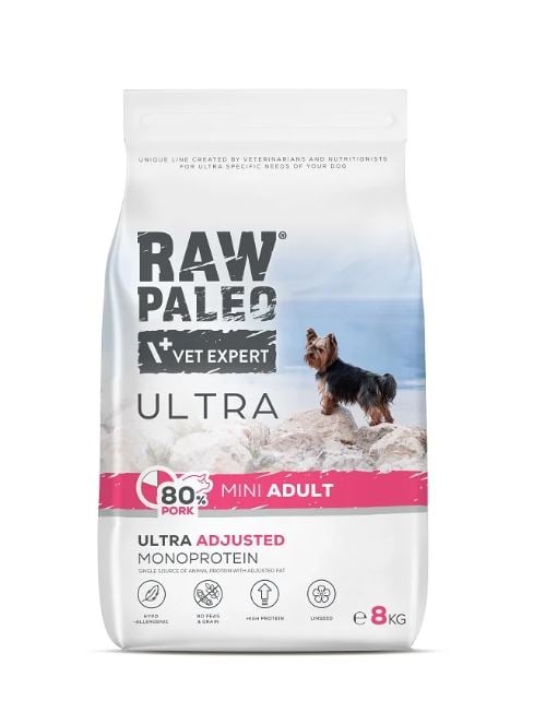 RAW PALEO Ultra Pork Mini Adult je vynikajúce krmivo pre dospelých psov malých plemien s hmotnosťou do 8 kg.