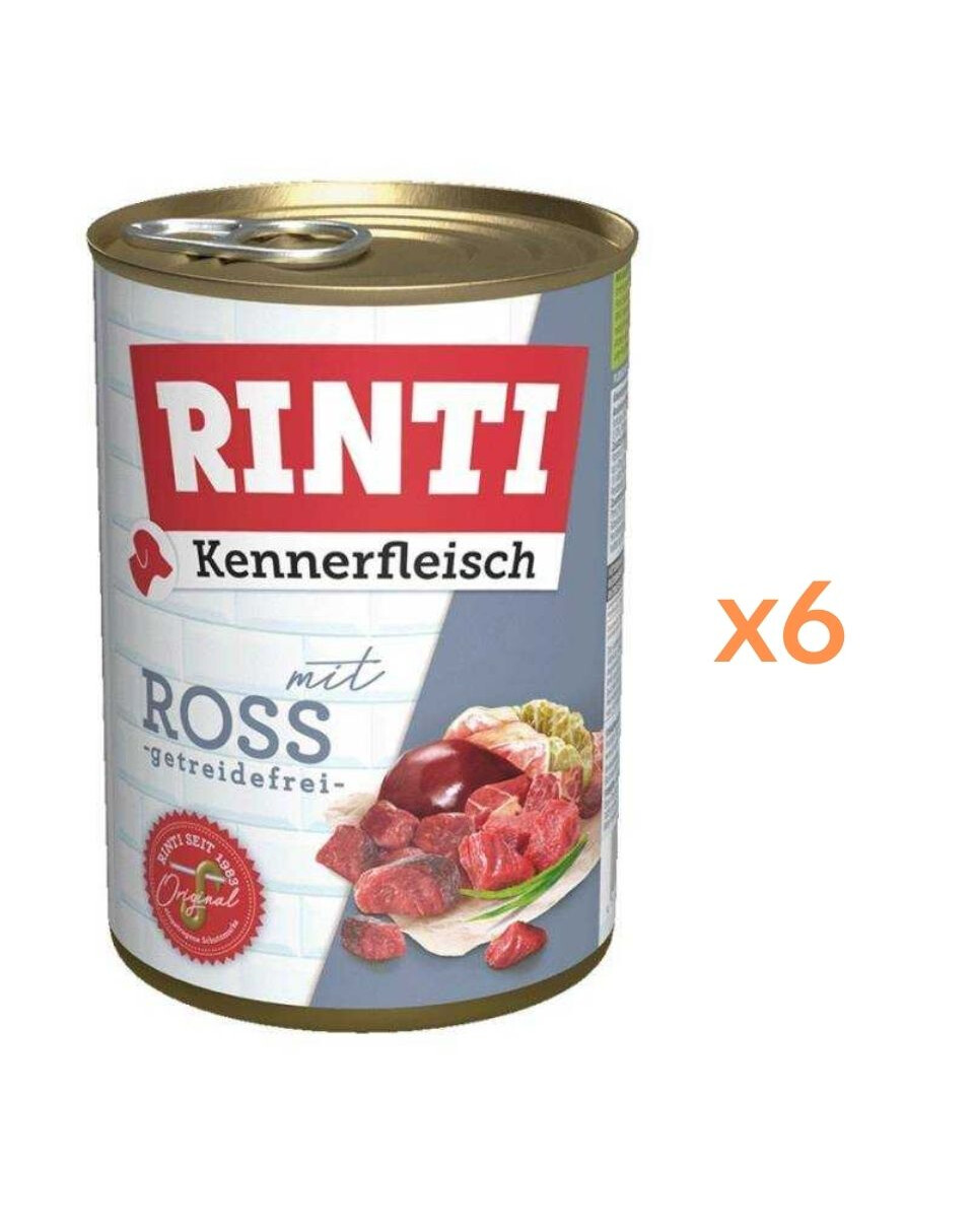 RINTI Kennerfleisch je kompletná mokrá strava pre dospelých psov, vytvorená s ohľadom na prirodzené kŕmenie založené na vysokej obsahu mäsa. Až 70% zloženia tvoria mäso a vedľajšie produkty, vrátane jemného koňacieho mäsa, ktoré sa vyznačuje ľahkou stráviteľnosťou a výnimočnou chuťou.