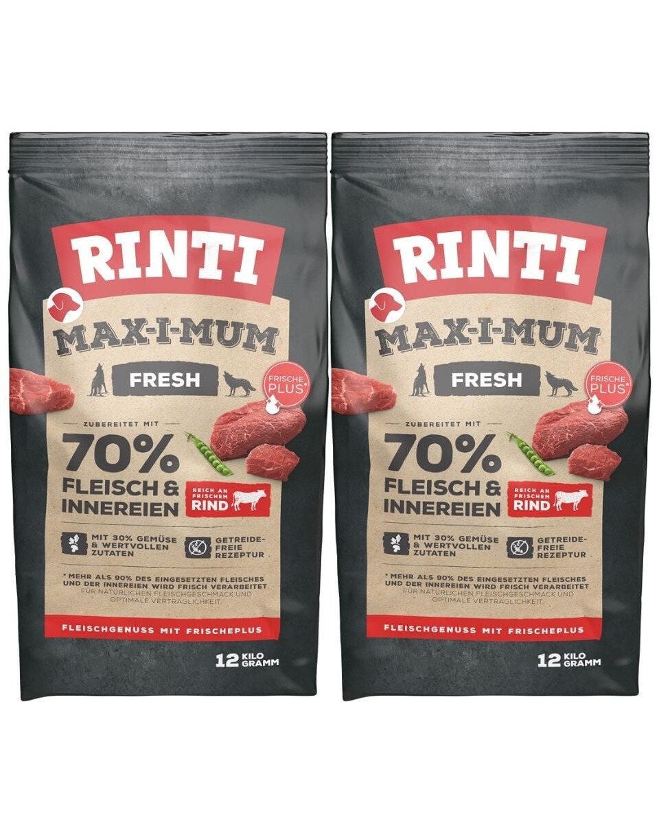 Rinti Max-i-Mum sa vyrába zo 65 % čerstvého mäsa a čerstvých