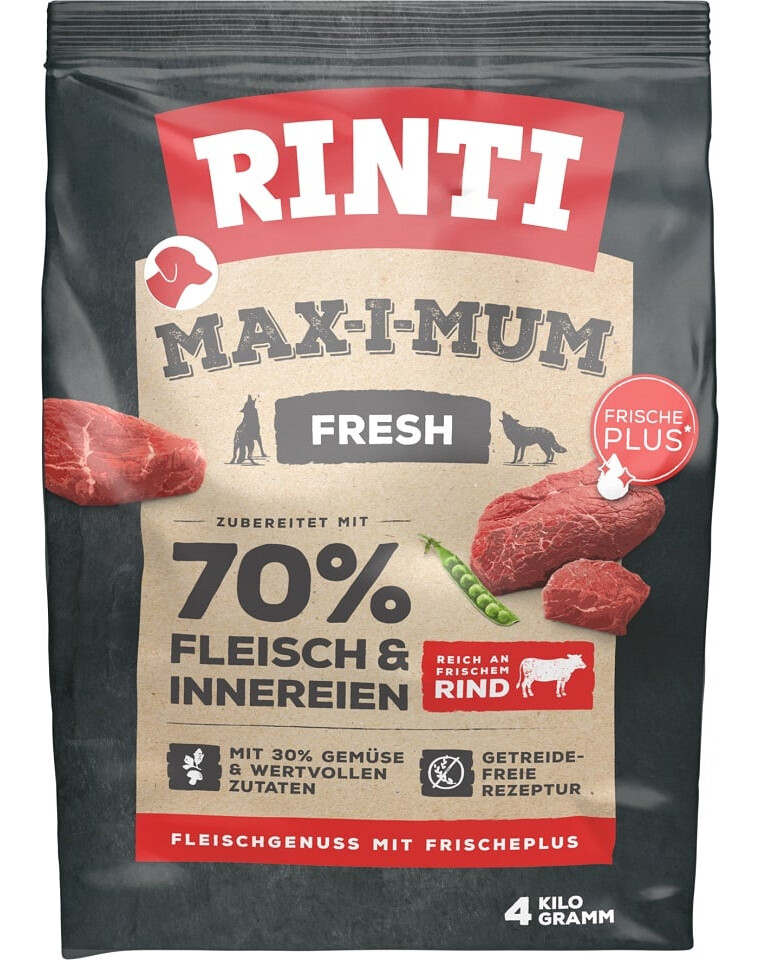 Rinti Max-i-Mum sa vyrába zo 65 % čerstvého mäsa a čerstvých