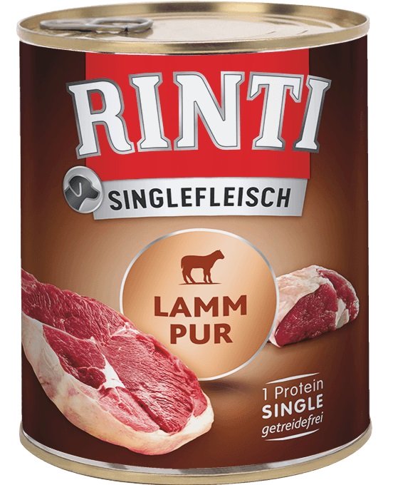 JEDNODUCHÉ MÄSO - jedinečné zloženie mäsa a vnútorností z jedného druhu zvierat Rinti Singlefleisch je mimoriadne vhodné pre vyváženú, na bielkoviny bohatú stravu bez pridaných sacharidov a bez obilnín, len s jedným zdrojom bielkovín. To môže tiež znížiť riziko potravinových alergií a intolerancií. Skutočnosť, že v každej odrode sa používa len jeden druh zvierat, zabezpečuje mimoriadne pestrú stravu vo všetkých odrodách. - Pre citlivé/vyberavé psy. RINTI SINGLE MEAT výlučne so 100 % obsahom čistého jahňacieho mäsa.