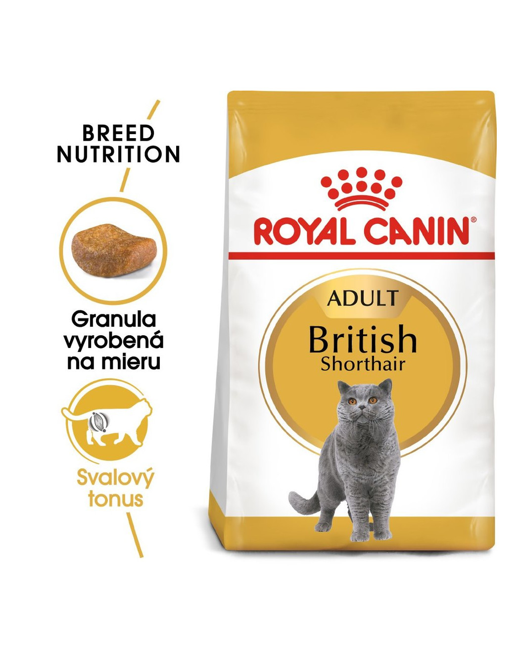 Royal Canin British Shorthair Adult je kompletné superprémiové krmivo pre dospelé britské krátkosrsté mačky staršie ako 12 mesiacov.