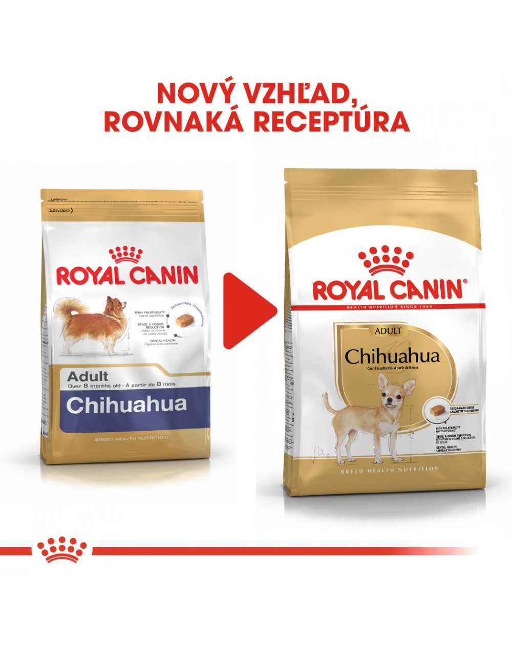 Royal Canin Chihuahua Adult je kompletné superprémiové krmivo pre dospelé (od 10 mesiacov veku) čistokrvné plemeno Čivavy.
