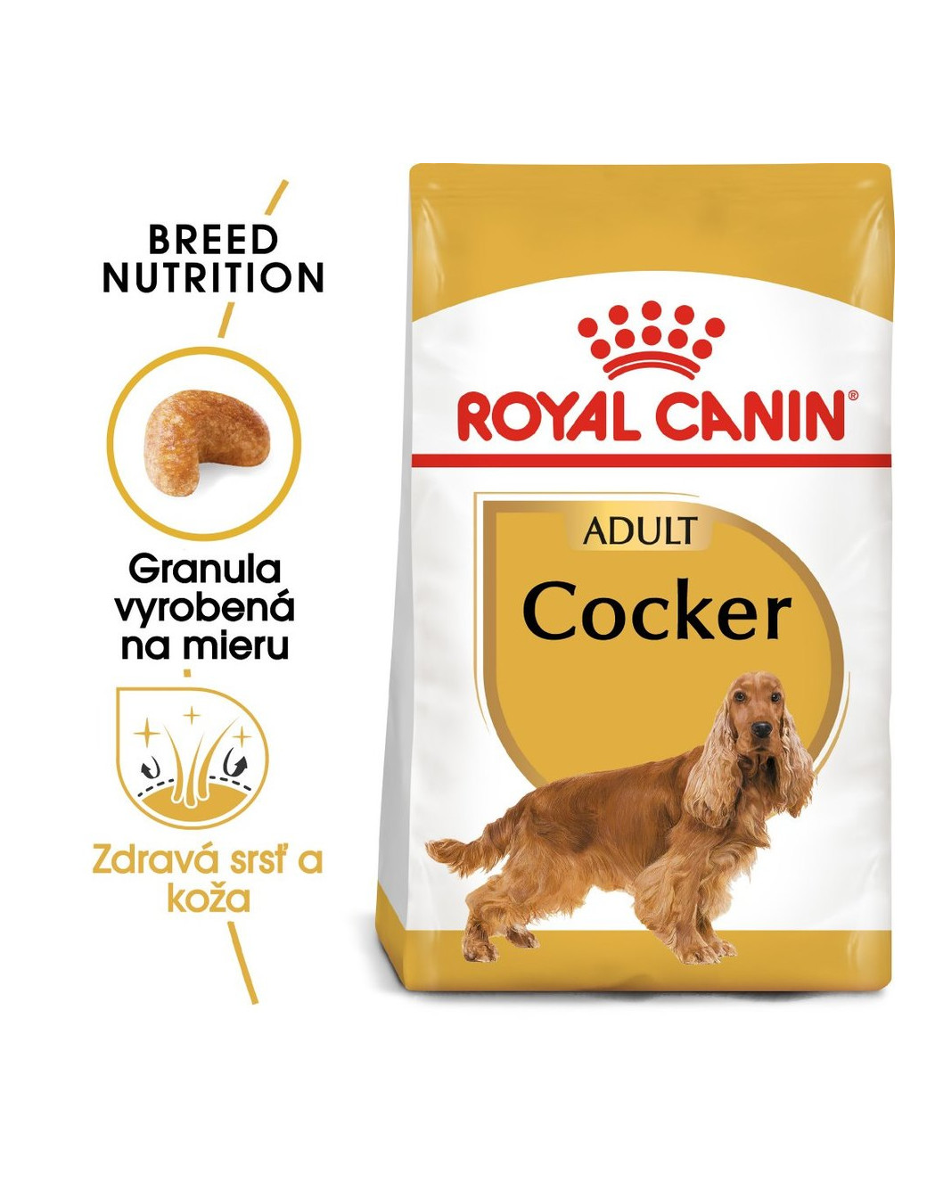 Royal Canin Cocker Adult je kompletné superprémiové krmivo pre dospelé (od 12 mesiacov veku) čistokrvné plemeno Kokeršpaniel.