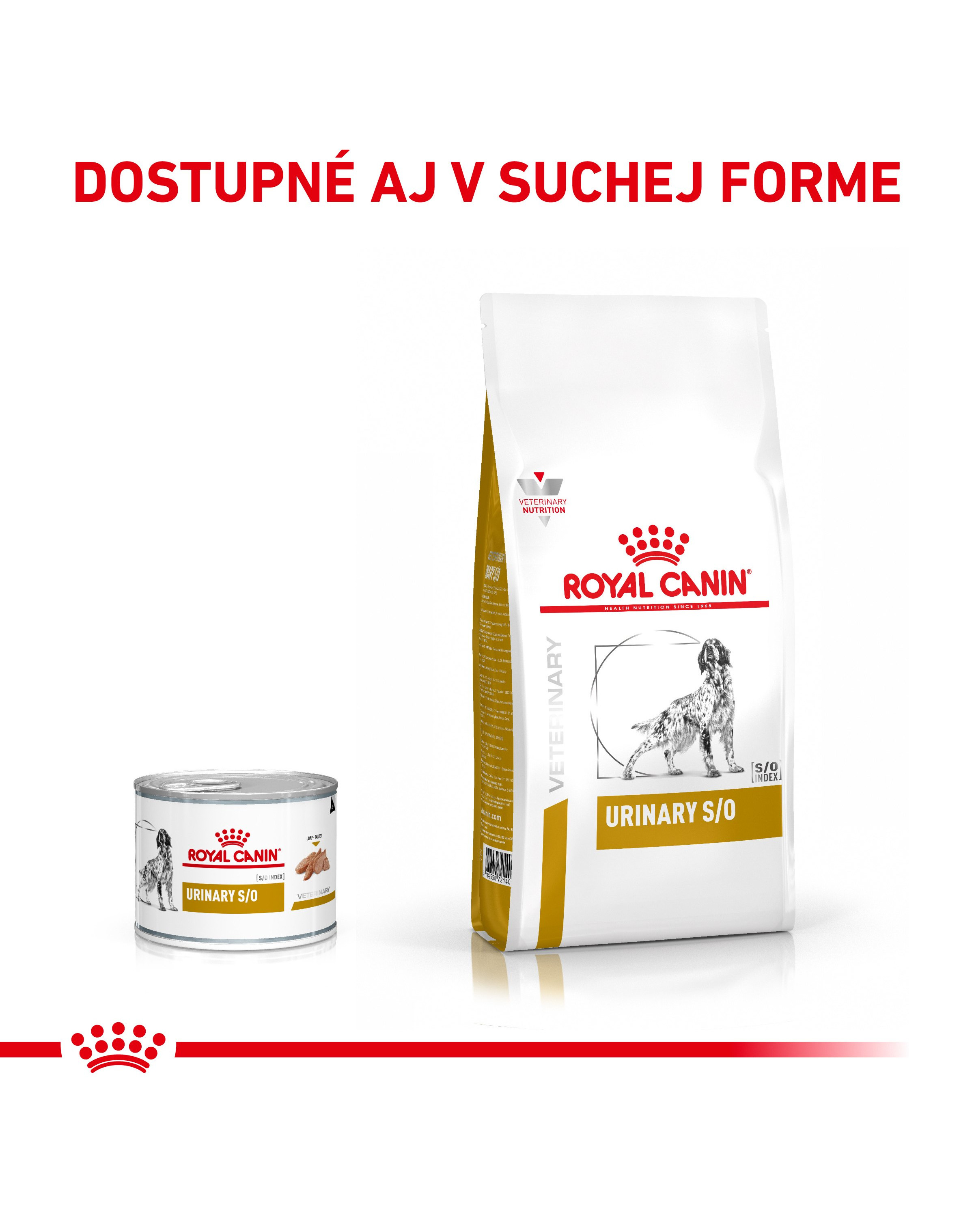 URINARY S / O je kompletné, diétne krmivo pre psov, ktoré rozpúšťa struvitové kamene a bráni ich opätovnému vytváraniu vďaka okysľujúcim vlastnostiam moču, nízkemu obsahu horčíka a zníženým hladinám bielkovín, ktoré sú však vysokej kvality.
