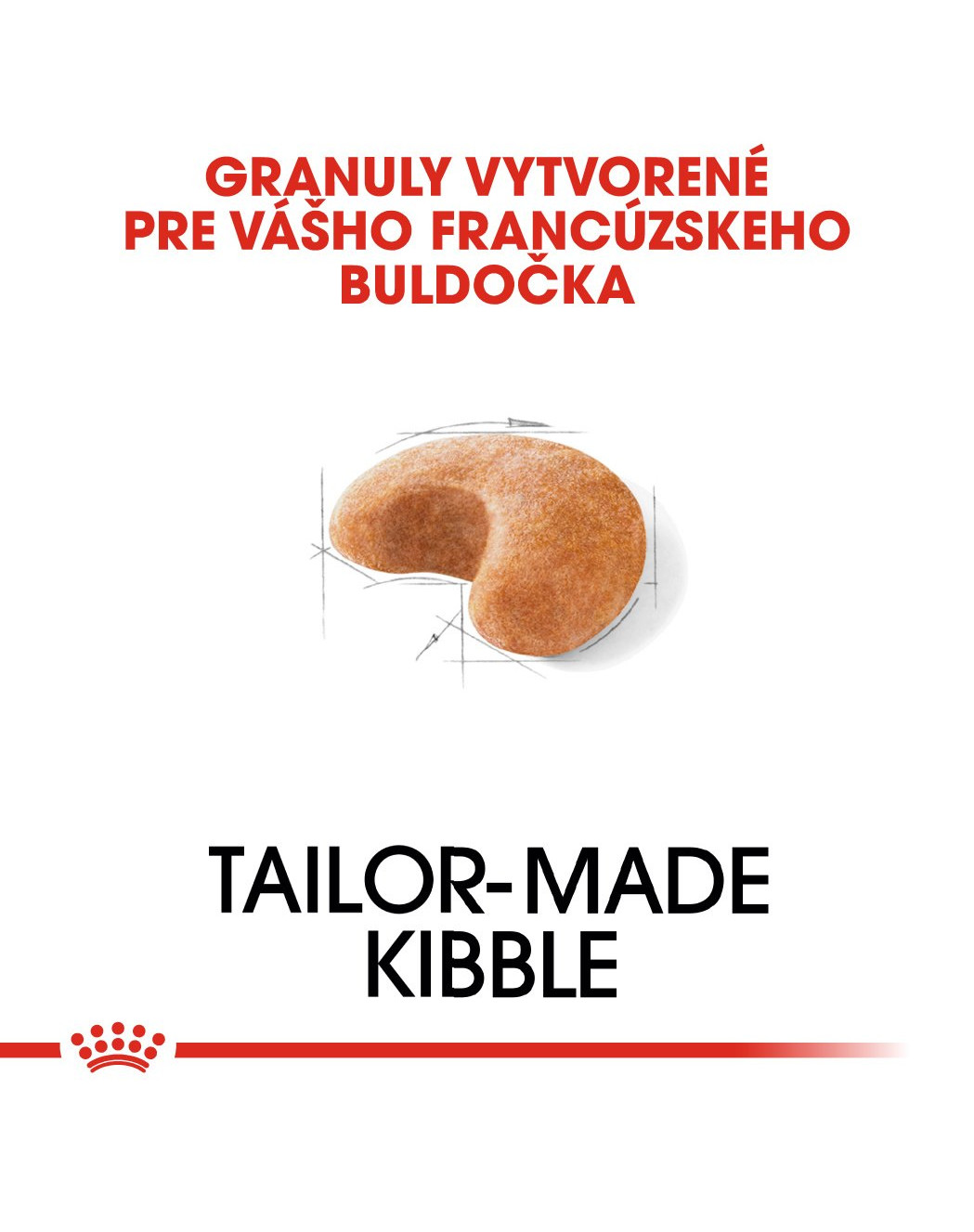 Granula krmiva ROYAL CANIN® French Bulldog Adult bola navrhnutá tak, aby sa vášmu francúzskemu buldočkovi ľahko uchopovala a nútila ho hrýzť, čo ďalej podporuje zdravé trávenie.