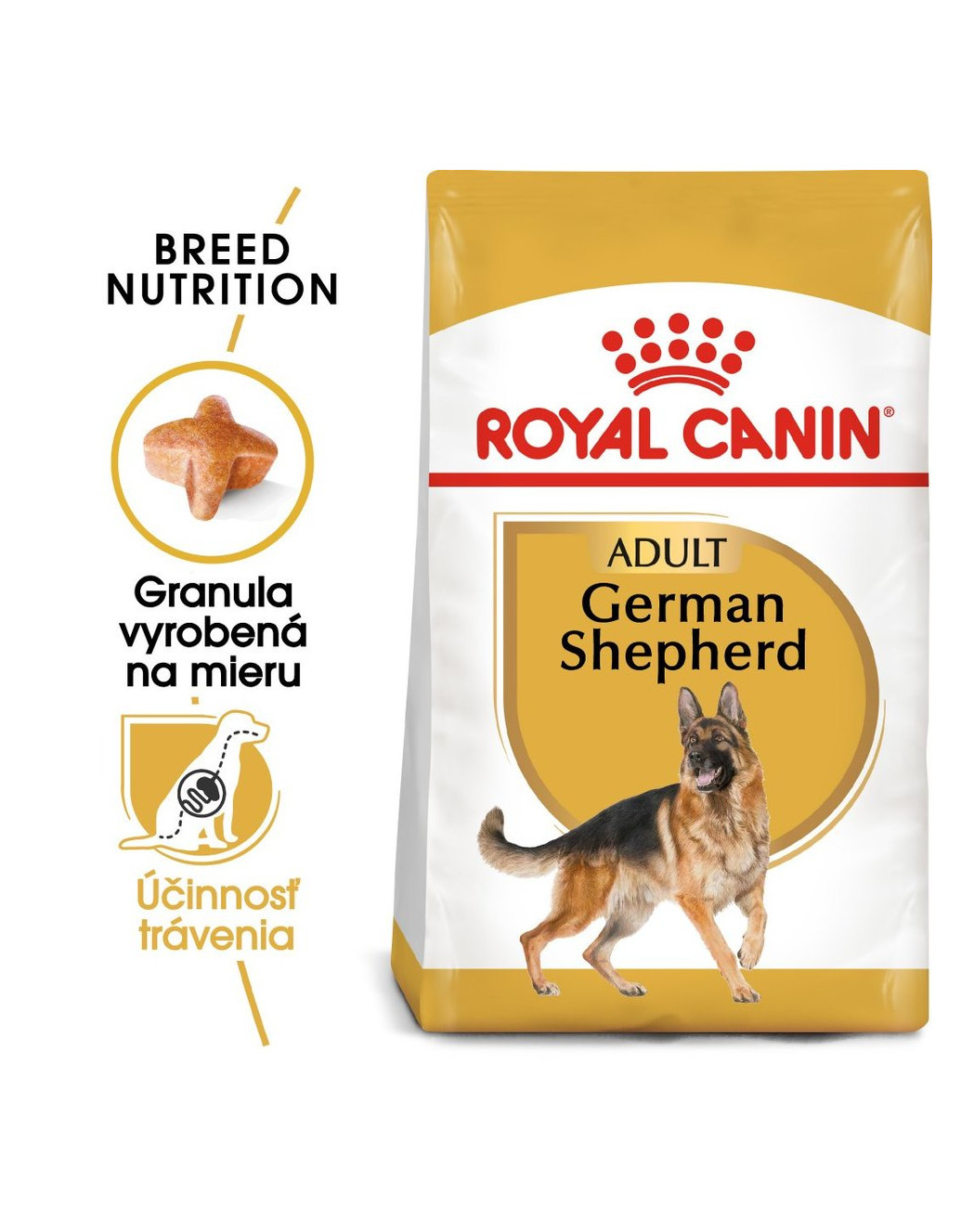 Royal Canin German Shepherd Adult je kompletné superprémiové krmivo pre dospelé (od 15 mesiacov veku) čistokrvné plemeno Nemeckého ovčiaka.