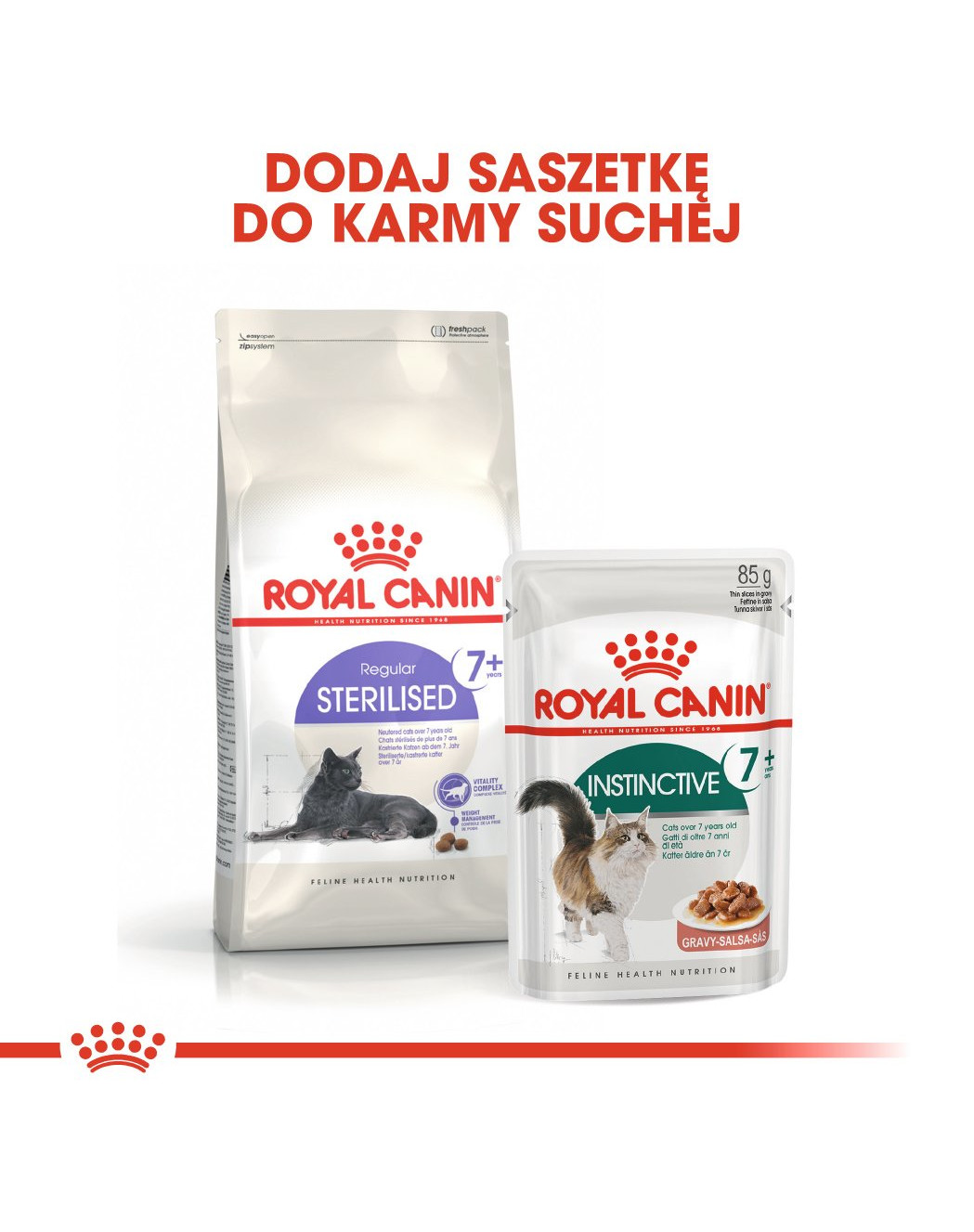 Royal Canin Instinctive+7 je vlhké krmivo pre dospelé mačky staršie ako 7 rokov, vrátane mačiek, ktoré sú vyberavé a kastrované.