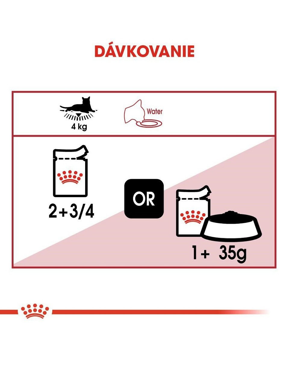 ROYAL CANIN® Instinctive v šťave spĺňa výživové požiadavky inštinktívne preferované dospelými mačkami. Starostlivo vybrané živiny pre optimálnu chutnosť robia tento produkt jednoducho neodolateľným pre Vašu mačku.