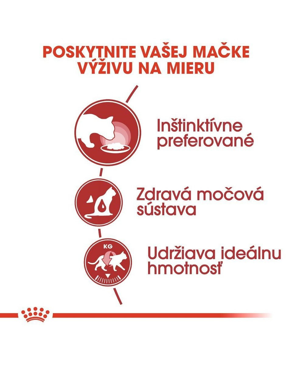 ROYAL CANIN® Instinctive v šťave spĺňa výživové požiadavky inštinktívne preferované dospelými mačkami. Starostlivo vybrané živiny pre optimálnu chutnosť robia tento produkt jednoducho neodolateľným pre Vašu mačku.