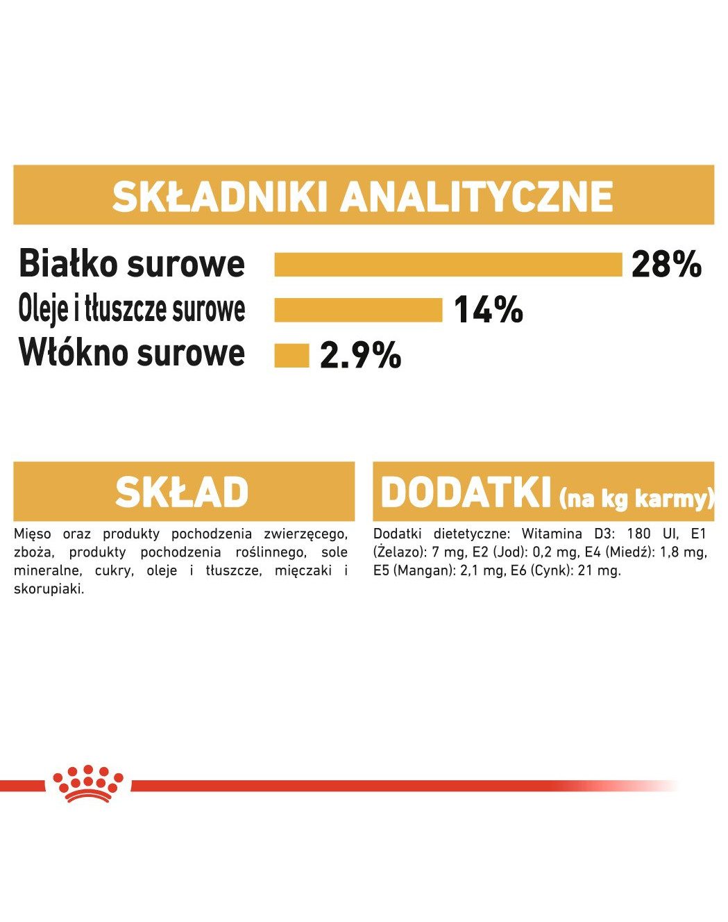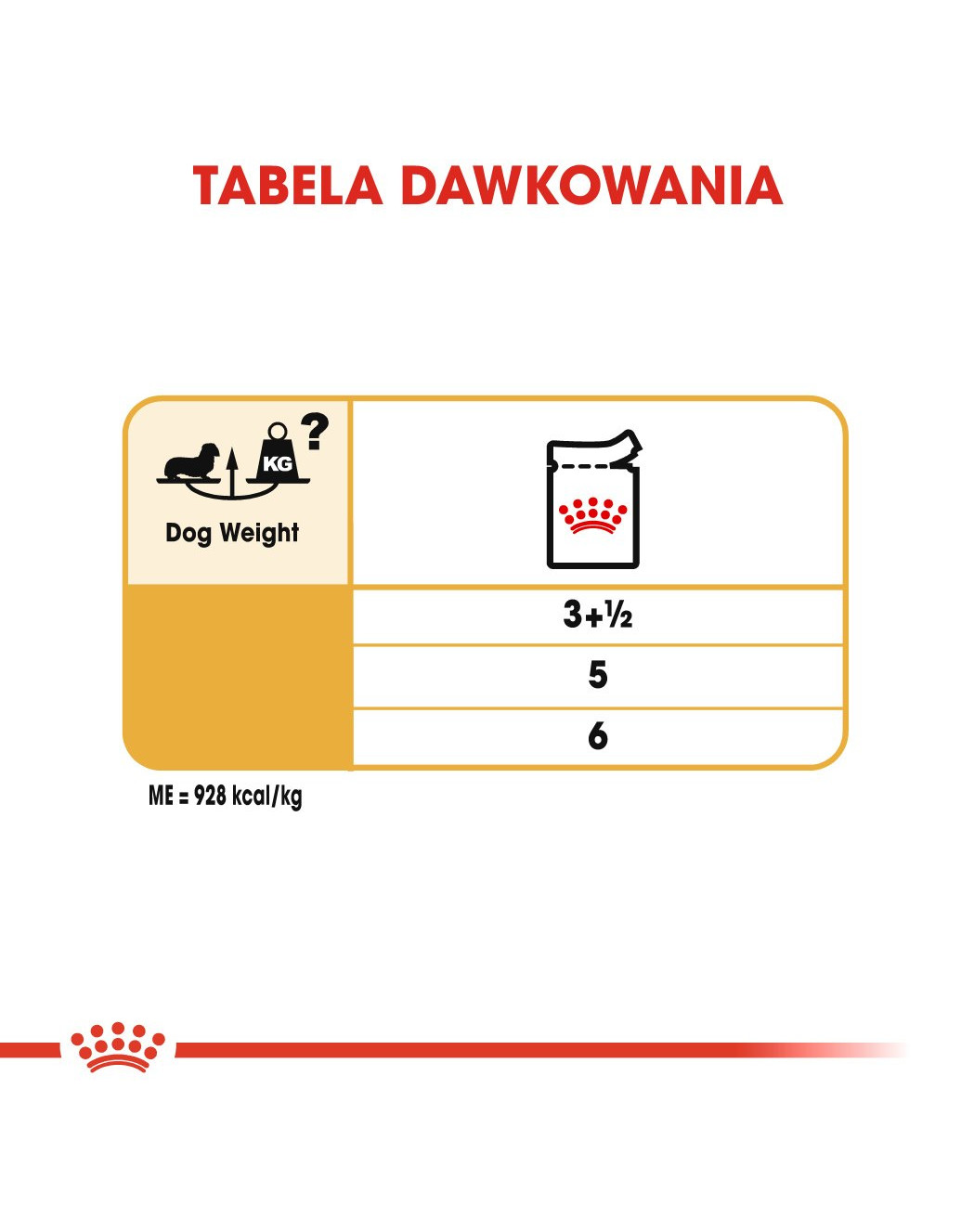 Mokra karma dla dorosłych psów ( od 10-tego miesiąca ) rasy jamnik. Przeznaczona jest dla wybrednych psów, sprzyja utrzymaniu stawów i mięśni. Specjalna receptura dba o optymalne napięcie mięśni. Opakowanie 85g.