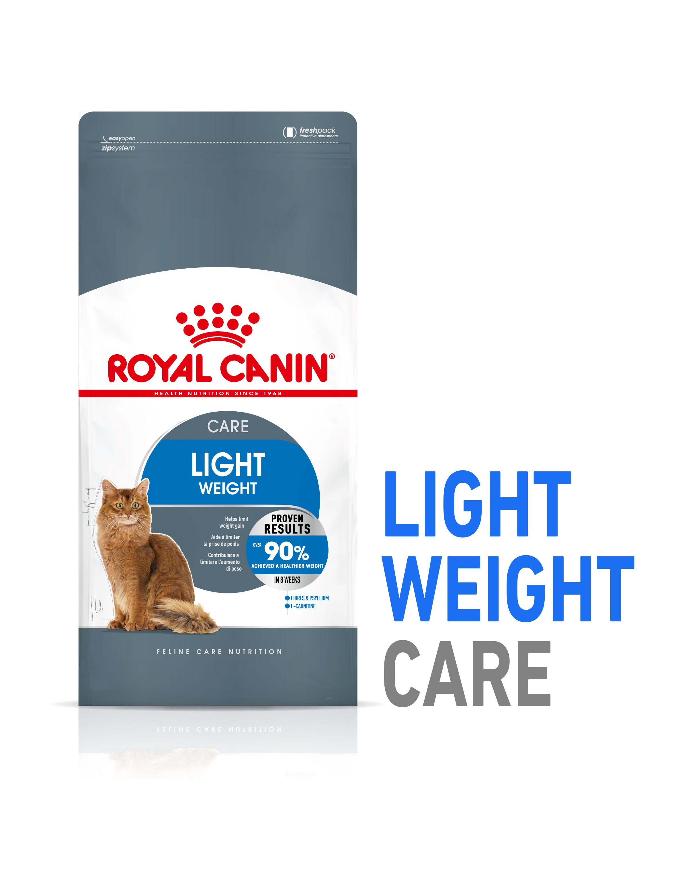 Royal Canin Light Weight Care je kompletné superprémiové krmivo pre dospelé mačky (staršie ako 1 rok) pre obmedzenie priberania na hmotnosti.