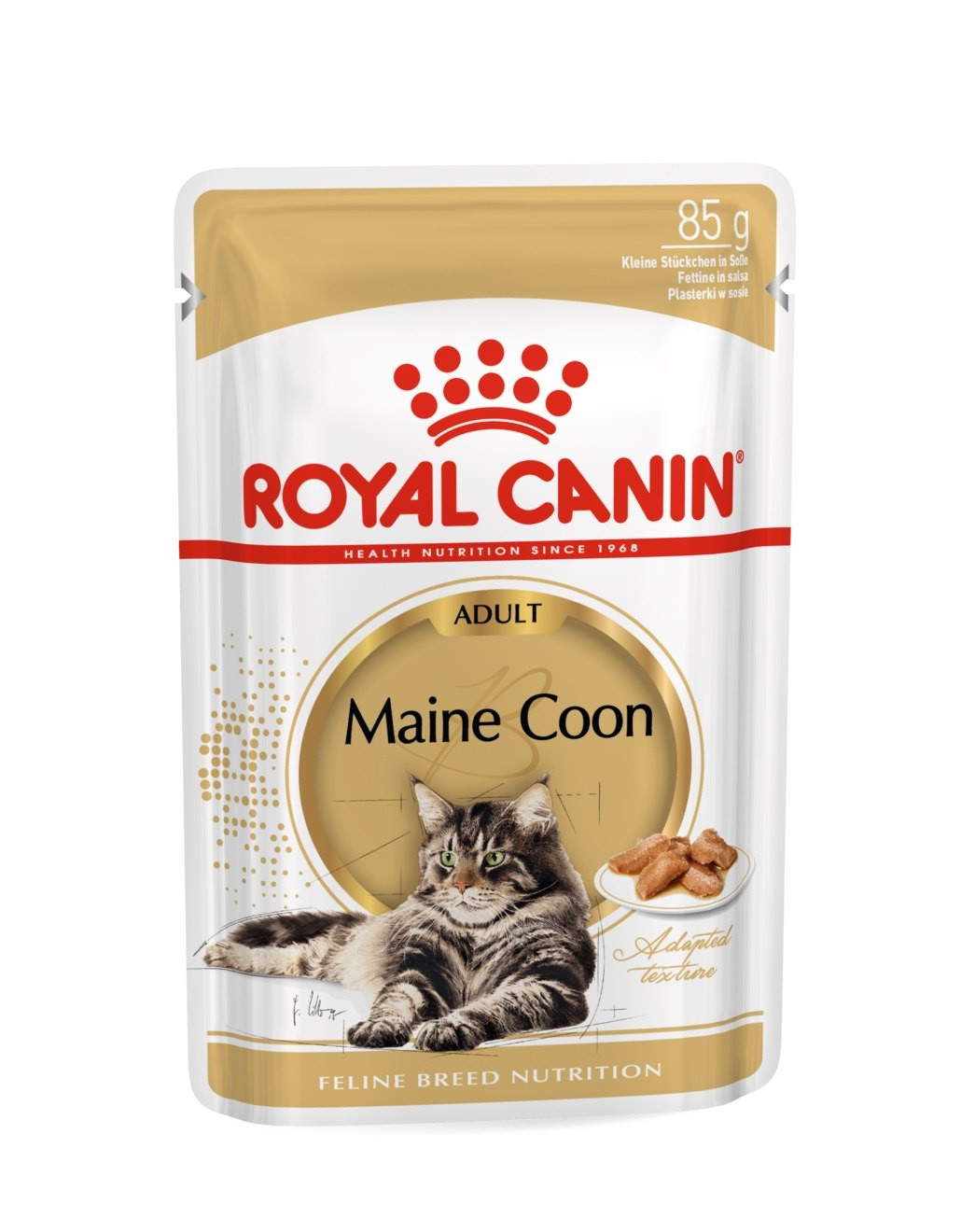 Šťavnatá kapsička v šťave, po ktorej aj tá najvyberavejšia Mainská mývalia mačka bude priasť blahom. Zloženie bohaté na bielkoviny dodá mohutnému plemenu dostatok energie na nočné bláznenie, zatiaľ čo minerály a vitamíny sa postarajú o krásnu a lesklú srsť. Kapsička je pripravená na mieru mačkám Maine Coon. Obsahuje tak všetky dôležité živiny na podporu kostí a kĺbov, ktoré bývajú u takto veľkého plemena často namáhané. V jednej kapsičke vaša malá šelma nájde všetko potrebné pre svoj spokojný život.