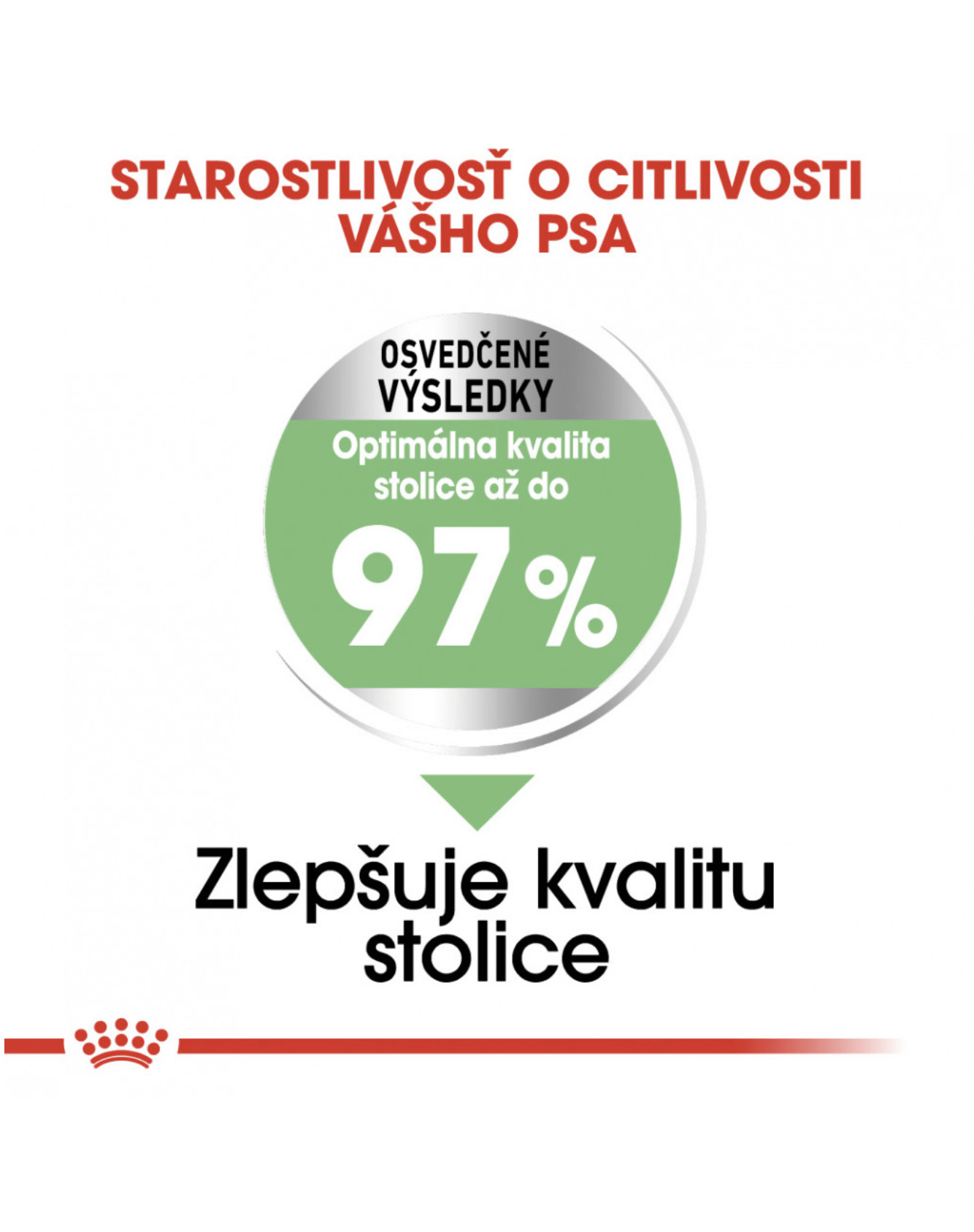 Program výživy Digestive Care je dostupný ako chrumkavé granuly a chutné paštéty v kapsičke. Obe sú nutrične kompletné a dokonale sa dopĺňajú. Prečo nevyskúšať paštétu ako doplnok granúl? Výsledkom používania tohto krmiva je vývoj optimálnej kvality stolice až v 97 % prípadov. Ide teda o jasný dôkaz toho, že tráviaca sústava funguje správne. Výsledky krmivá sú tak preukázateľným úspechom.