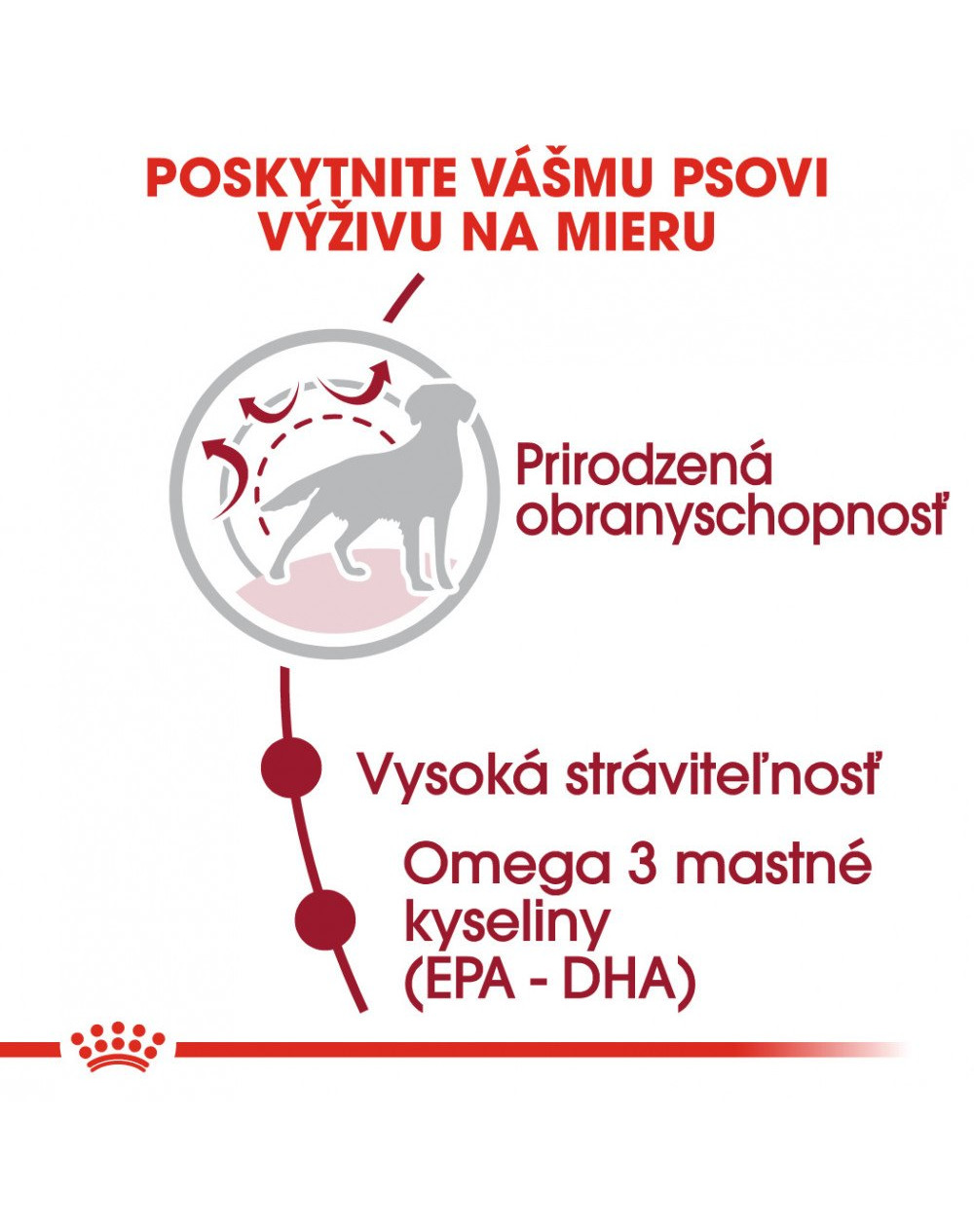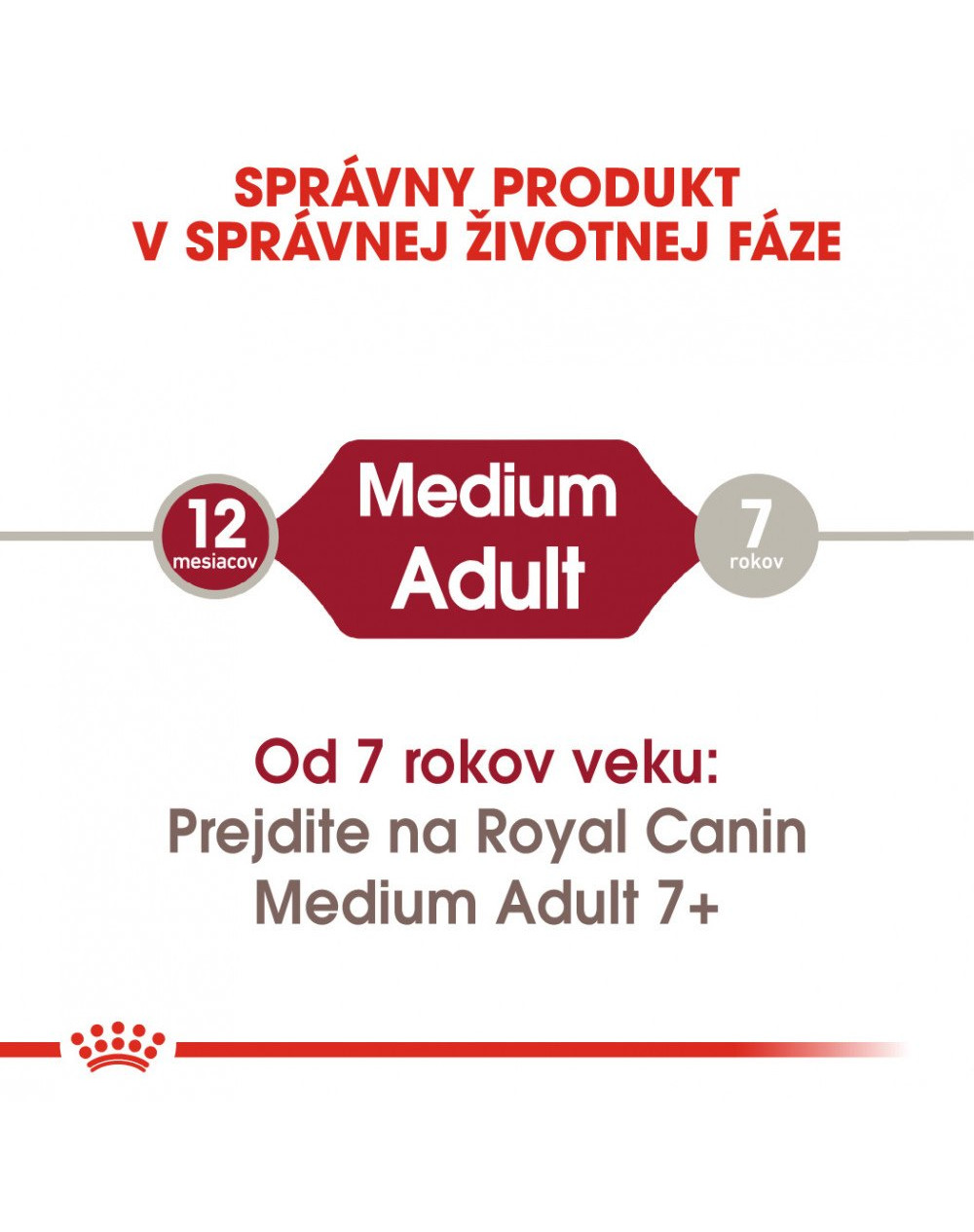 Royal Canin Medium Adult je kompletné superprémiové krmivo pre dospelé psy (od 12 mesiacov do 7 rokov veku) stredných plemien (11 – 25 kg hmotnosti v dospelosti).