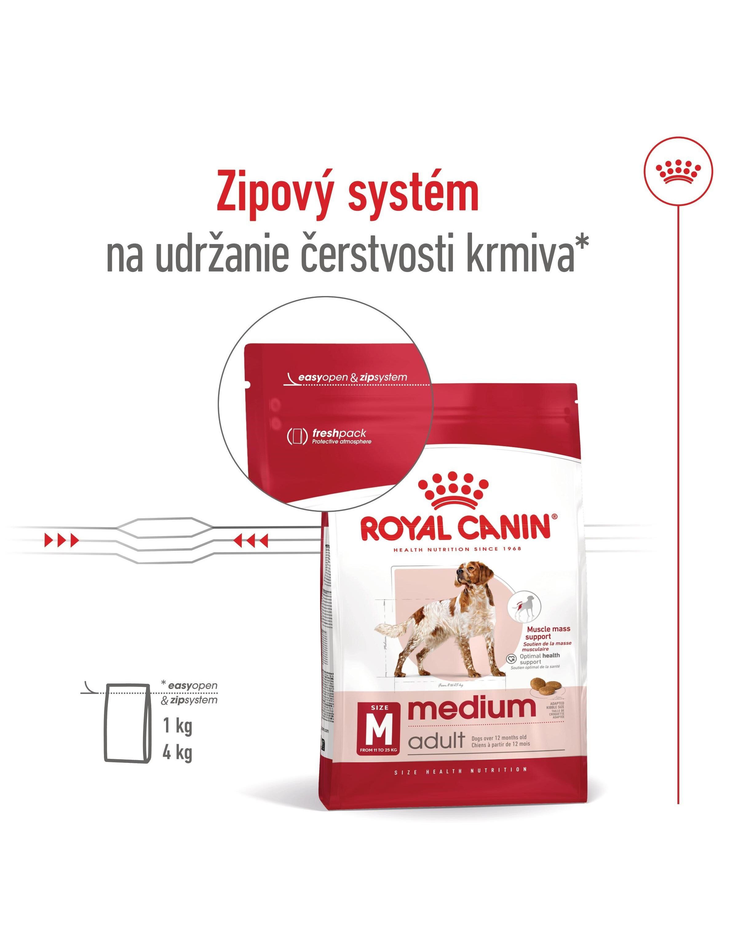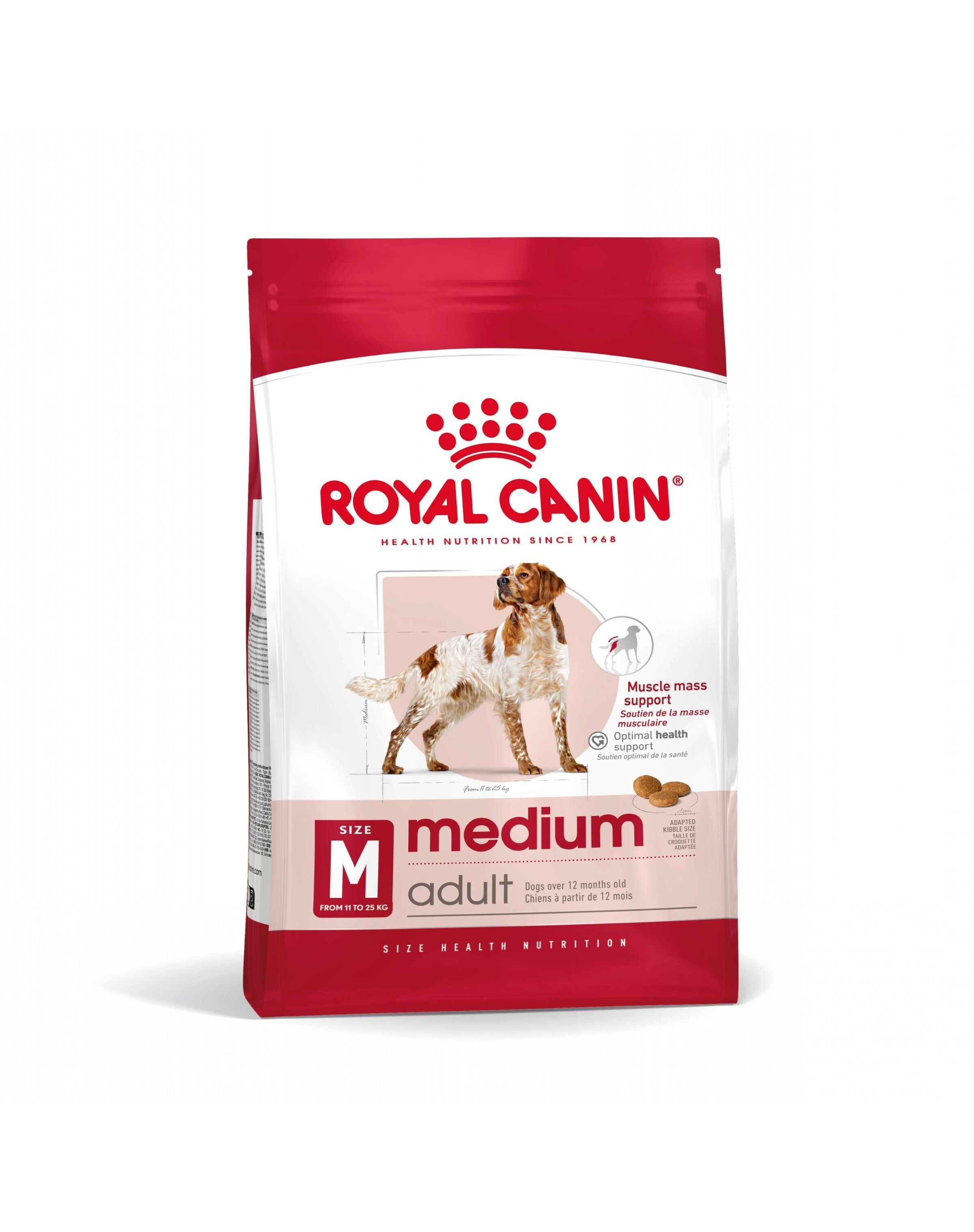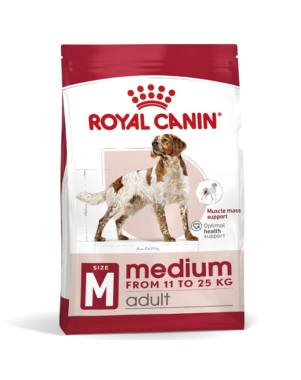 Royal Canin Medium Adult je kompletné superprémiové krmivo pre dospelé psy (od 12 mesiacov do 7 rokov veku) stredných plemien (11 – 25 kg hmotnosti v dospelosti).