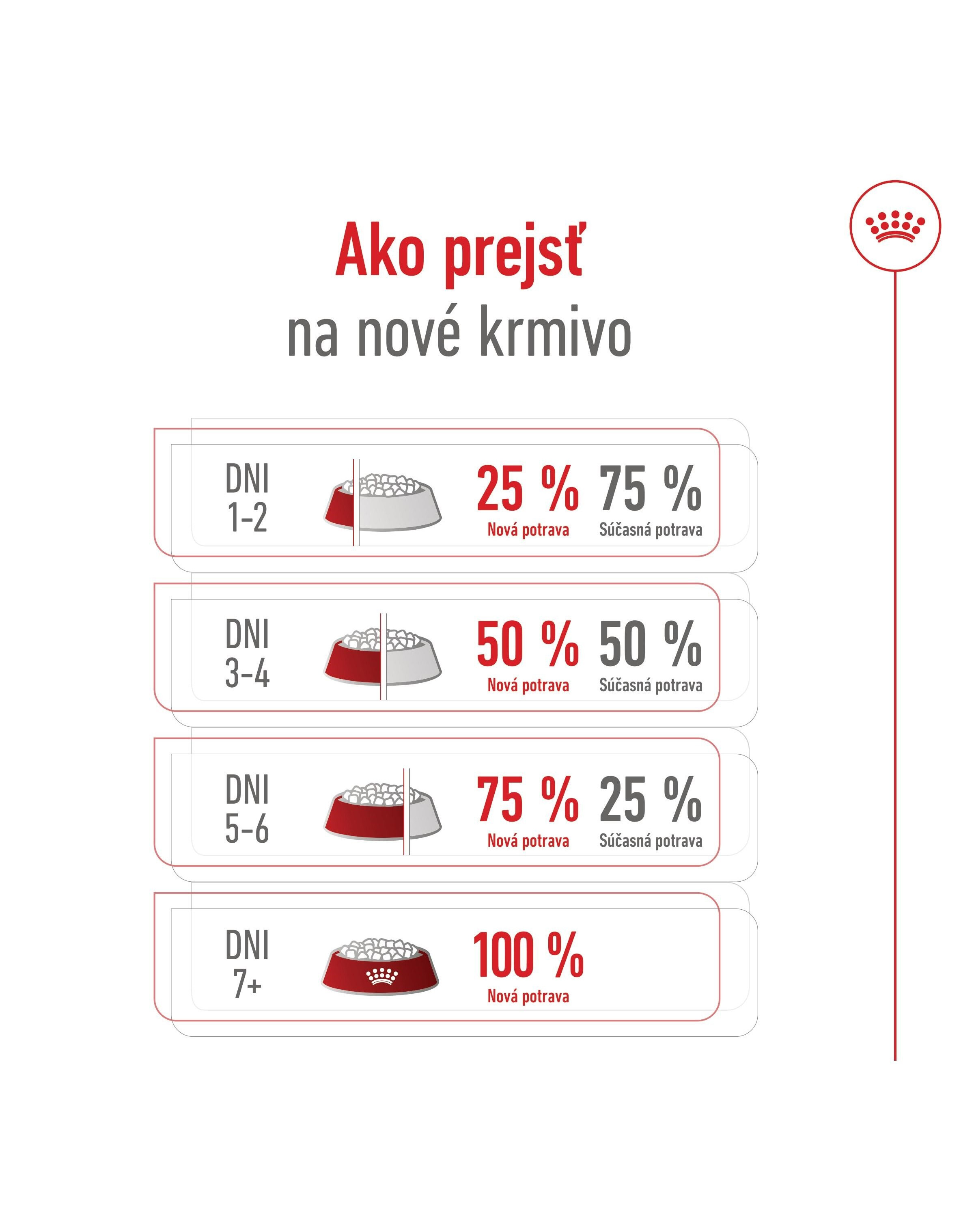 dehydrované hydinové bielkoviny, pšenica, kukuričná múka, pšeničná múka, kukurica, hydrolyzované živočíšne bielkoviny, živočíšne tuky, dehydrované hovädzie a bravčové bielkoviny, jačmeň, kukuričný glutén, cukrovarské rezky, minerálne látky, sójový olej, kvasnicové produkty, rybí olej, kvasnice (zdroj mannánoligosacharidov), olej z rias Schizochytrium sp.