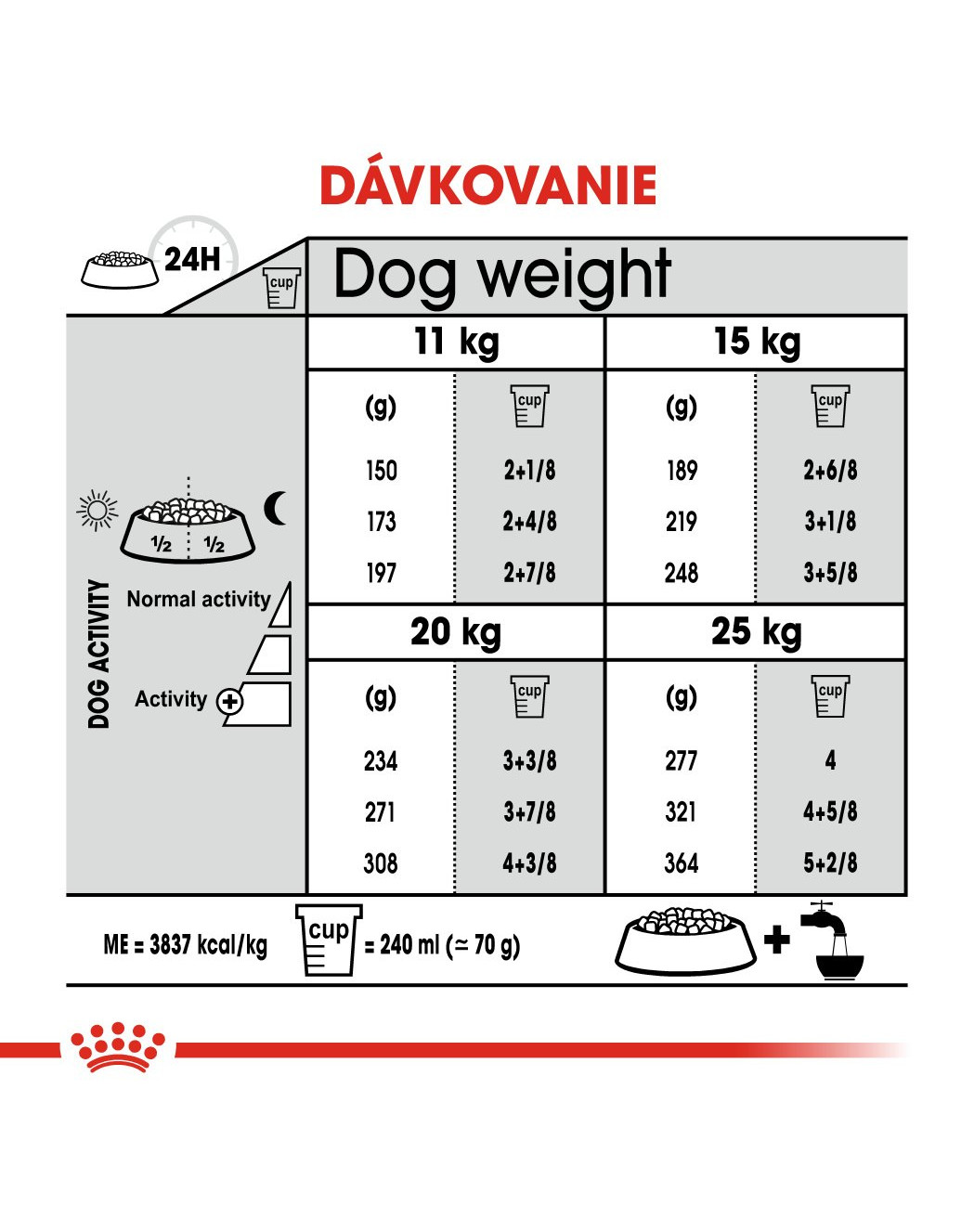 Kukuričná múka, sušená hydinová bielkovina, ryža, živočíšne tuky, hydrolyzované živočíšne bielkoviny, kaša z cukrovej repy, minerálne soli, rastlinné vlákna, pražená celulóza.