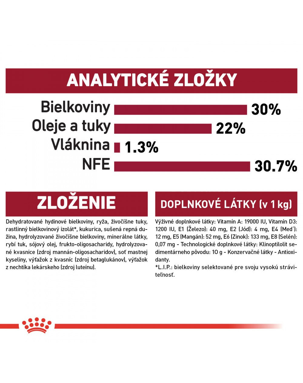 * L.I.P.: proteín vybraný pre svoju veľmi vysokú stráviteľnosť.