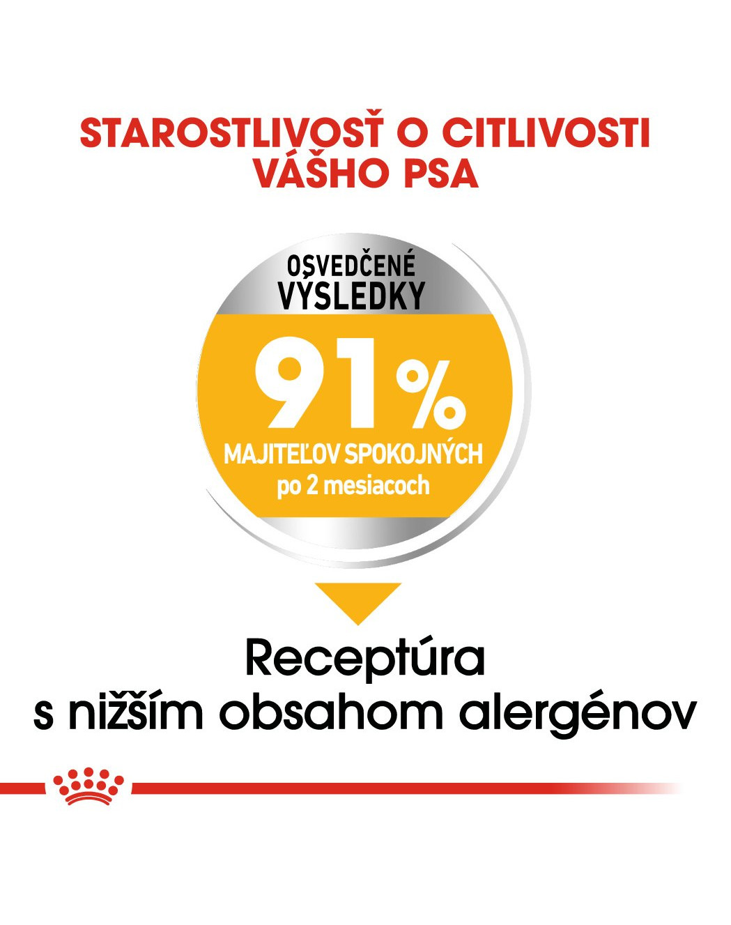 Stav pokožky odráža celkové zdravie psa a vhodná diéta hrá významnú úlohu v starostlivosti o zdravú pokožku. Špeciálne zloženie MINI Dermacomfort, ktoré obsahuje vysoko kvalitné zdroje bielkovín, je obzvlášť vhodné pre psov, ktoré trápia podráždenie pokožky a svrbenie. Po 1 mesiaci si 87% majiteľov psov všimlo, že sa ich pes menej škriabe. * Interné štúdie Royal Canin 2009 - Vykonaná s 82 psami s citlivou pokožkou.