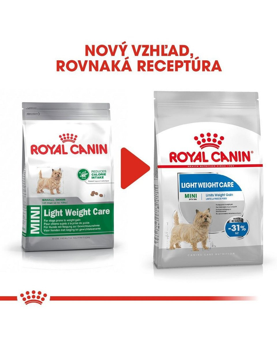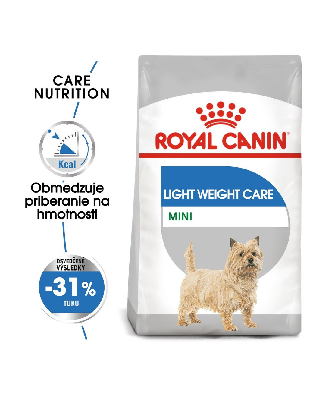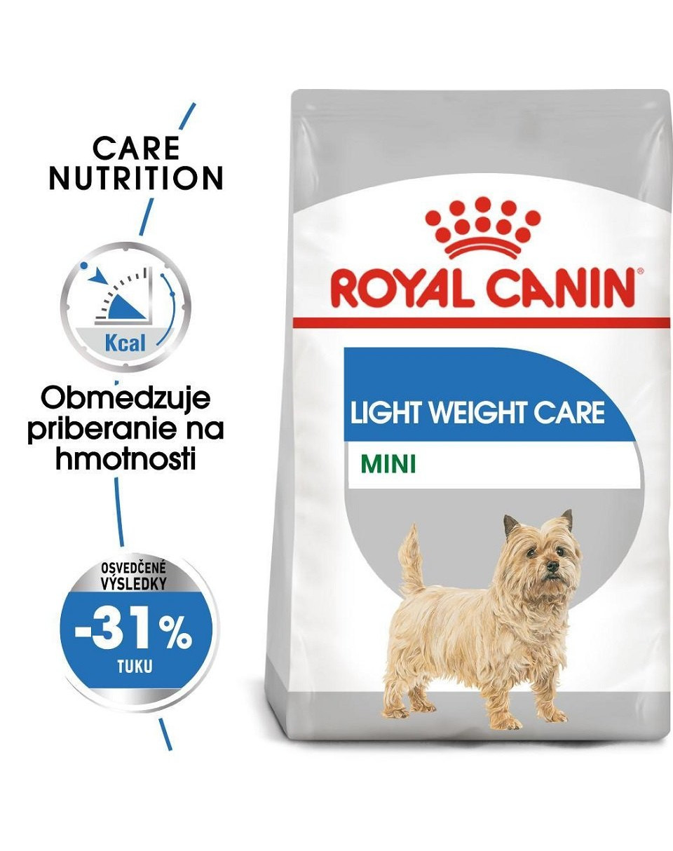 Nadváha môže mať negatívny vplyv na celkové zdravie Vášho psa. MINI LIGHT WEIGHT CARE je precízne vyvážené krmivo, ktoré pomáha dosiahnuť ideálnu váhy a udržať ju. Vysoký obsah bielkovín (30%) pomáha udržiavať svalový objem a nízky obsah tukov (11%) pomáha obmedziť priberanie na váhe. Toto krmivo má o 15% menej kalórií * a obsahuje L-karnitín. * V porovnaní s bežným krmivom.