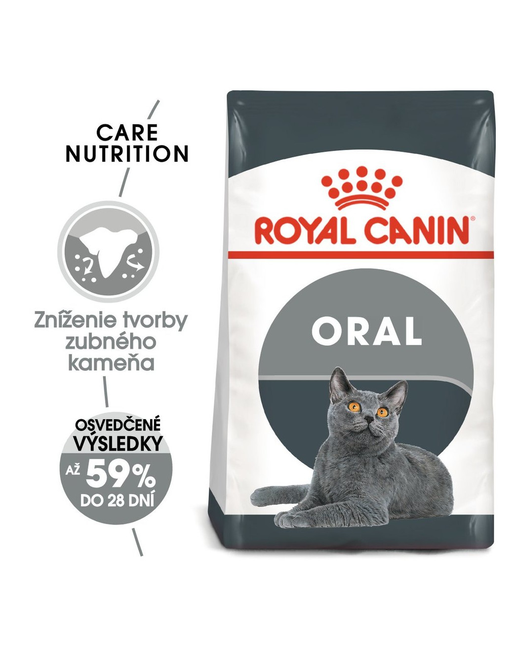 Klinickými štúdiami bolo dokázané, že už po 28 dňoch súvislej konzumácie krmiva ROYAL CANIN® Oral Care je redukovaná tvorba zubného kameňa o 59 %. Obsiahnuté minerály taktiež udržujú močové cesty vašej mačky zdravé.