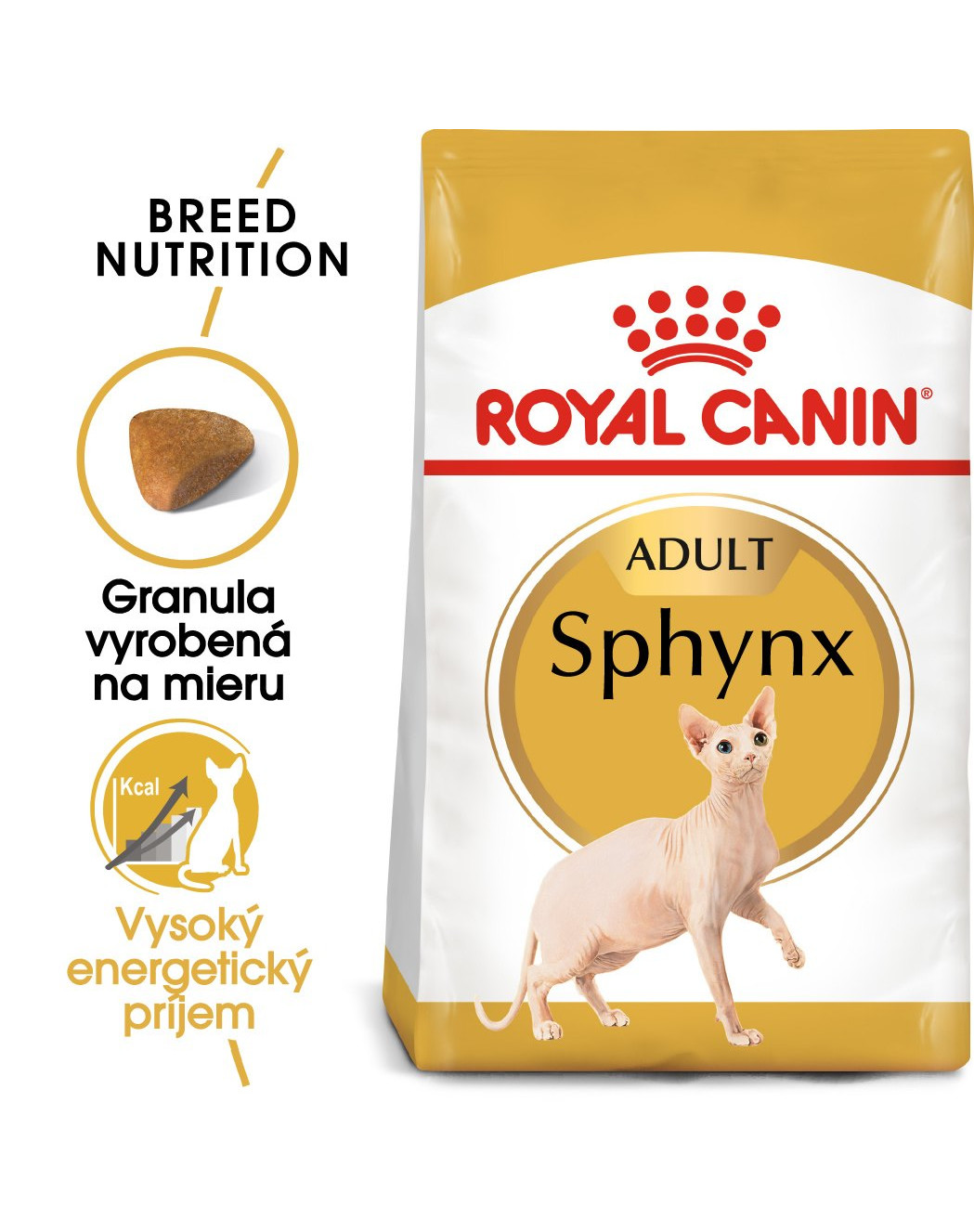 Royal Canin Sphynx je kompletné superprémiové krmivo pre dospelé Sphynx mačky staršie ako 12 mesiacov.